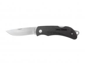 Nóż wykonano ze stali nierdzewnej Sandvik 12C27 o twardości 57-59 HRC, czyli idealnie dopasowanej do potrzeb myśliwych, a co najważniejsze łatwo się go ostrzy. Gumowana, profilowana rękojeść pewnie i bezpiecznie trzyma się w dłoni.