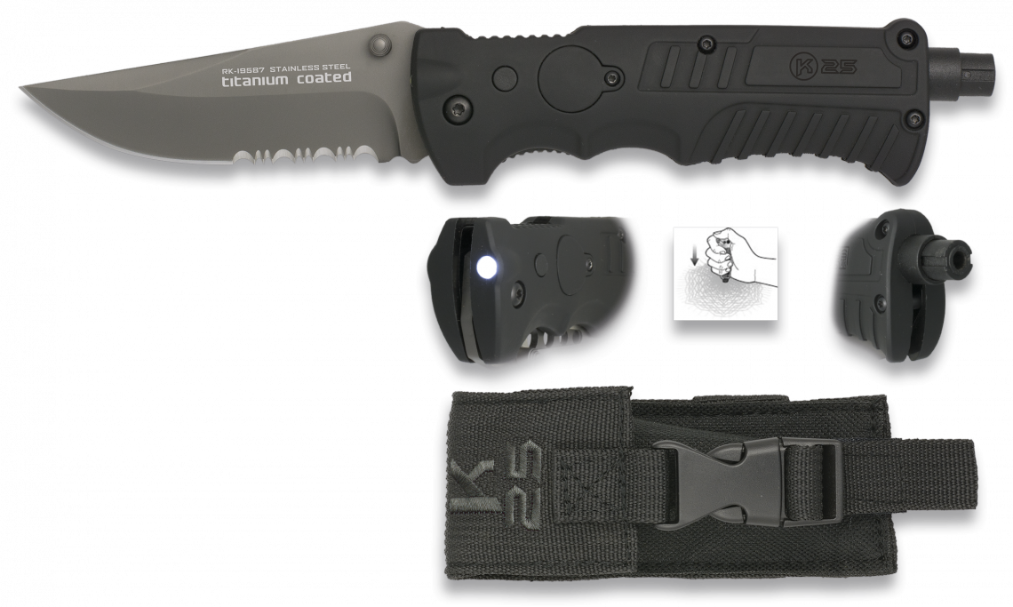 Nóż renomowanej hiszpańskiej marki K25, doskonały na wyprawy survivalowe.