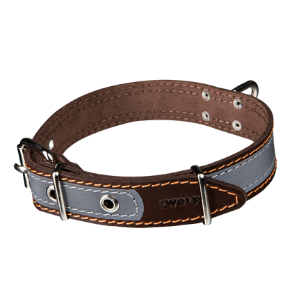 Specjalistyczna obroża tropowa wykonana ze skóry licowej, dodatkowo obszyta pomarańczową nitką i odblaskiem. Wewnątrz nie ma żadnych wystających elementów, które mogłyby drażnić lub rozpraszać psa podczas pracy na tropie. Obroża zaopatrzona w krętlik zapobiegający skręcaniu się otoku.