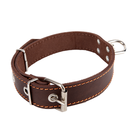 Specjalistyczna obroża tropowa wykonana ze skóry licowej, dodatkowo obszyta pomarańczową nitką. Wewnątrz nie ma żadnych wystających elementów, które mogłyby drażnić lub rozpraszać psa podczas pracy na tropie. Obroża zaopatrzona w krętlik zapobiegający skręcaniu się otoku.