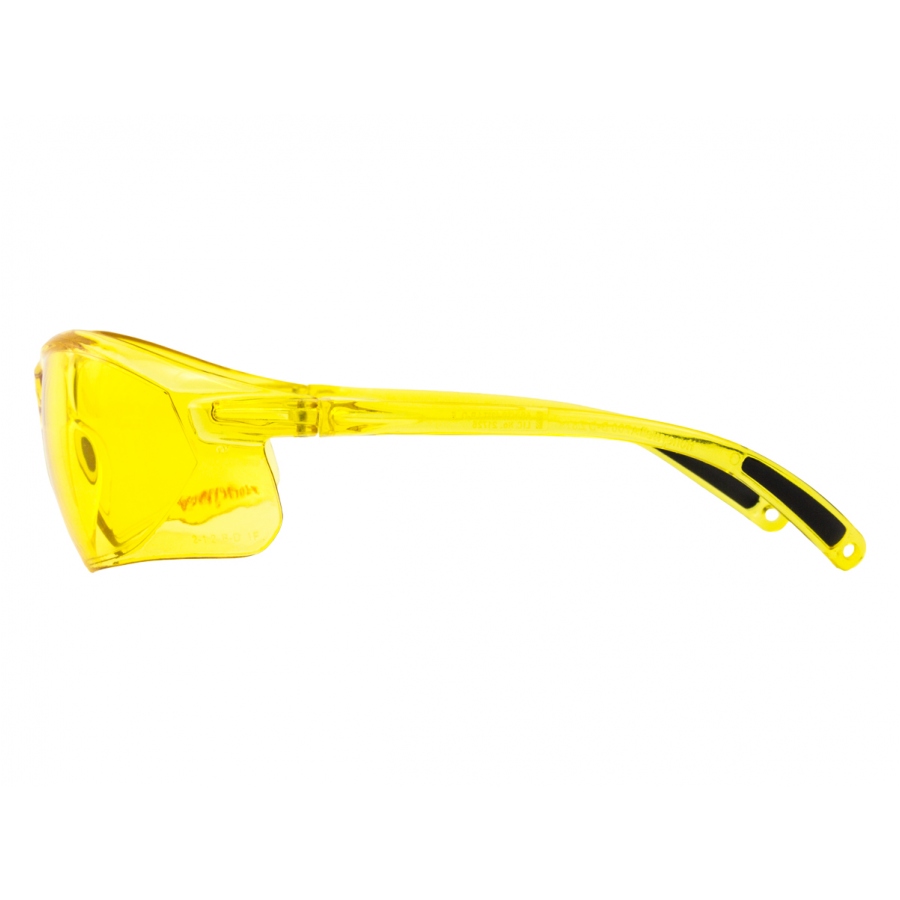 Soczewki okularów wykonano z żółtego poliwęglanu, który zapewnia czysty i ostry obraz oraz poprawia nasze widzenie w warunkach szczątkowego oświetlenia.