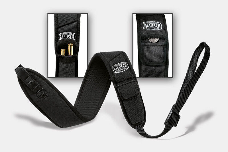 Pas do broni Mauser posiada bezstopniową regulację długości i wykonany jest z antypoślizgowego neoprenu. 70 mm szerokość zapewnia komfort w przenoszeniu broni. Pas wyposażony jest w ładownicę na dwa naboje oraz kieszonkę na zatyczki Muzzle-Safe lub baterie guzikową do lunety. Posiada system szybkiego wypięcia QR (Quick Realease).