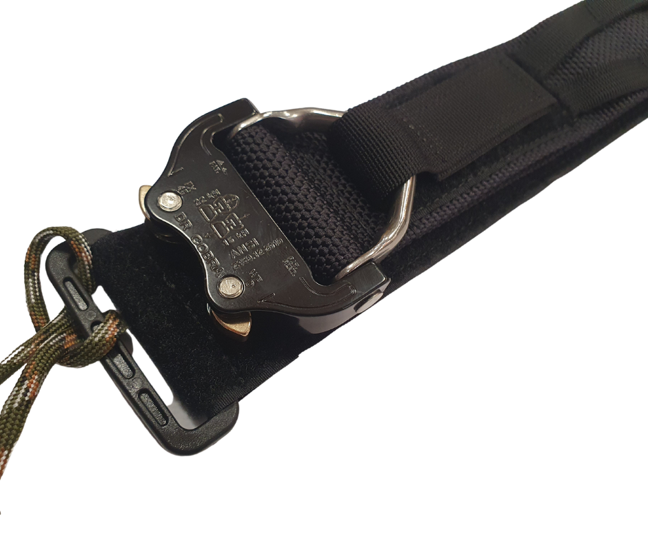 Pas zewnętrzny ma klamrę COBRA 45mm firmy AustriAlpin, która zapewnia płynną regulację i pewne trzymanie. Cały pas wyposażony jest w małe i duże molle, dzięki którym możesz przypiąć oporządzenie bez obaw. Multitool, latarkę czy kaburę z pistoletem będziesz mieć zawsze pod ręką.