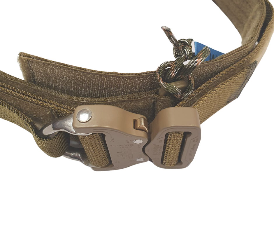Pas zewnętrzny ma klamrę COBRA 45mm firmy AustriAlpin, która zapewnia płynną regulację i pewne trzymanie. Cały pas wyposażony jest w małe i duże molle, dzięki którym możesz przypiąć oporządzenie bez obaw. Multitool, latarkę czy kaburę z pistoletem będziesz mieć zawsze pod ręką.