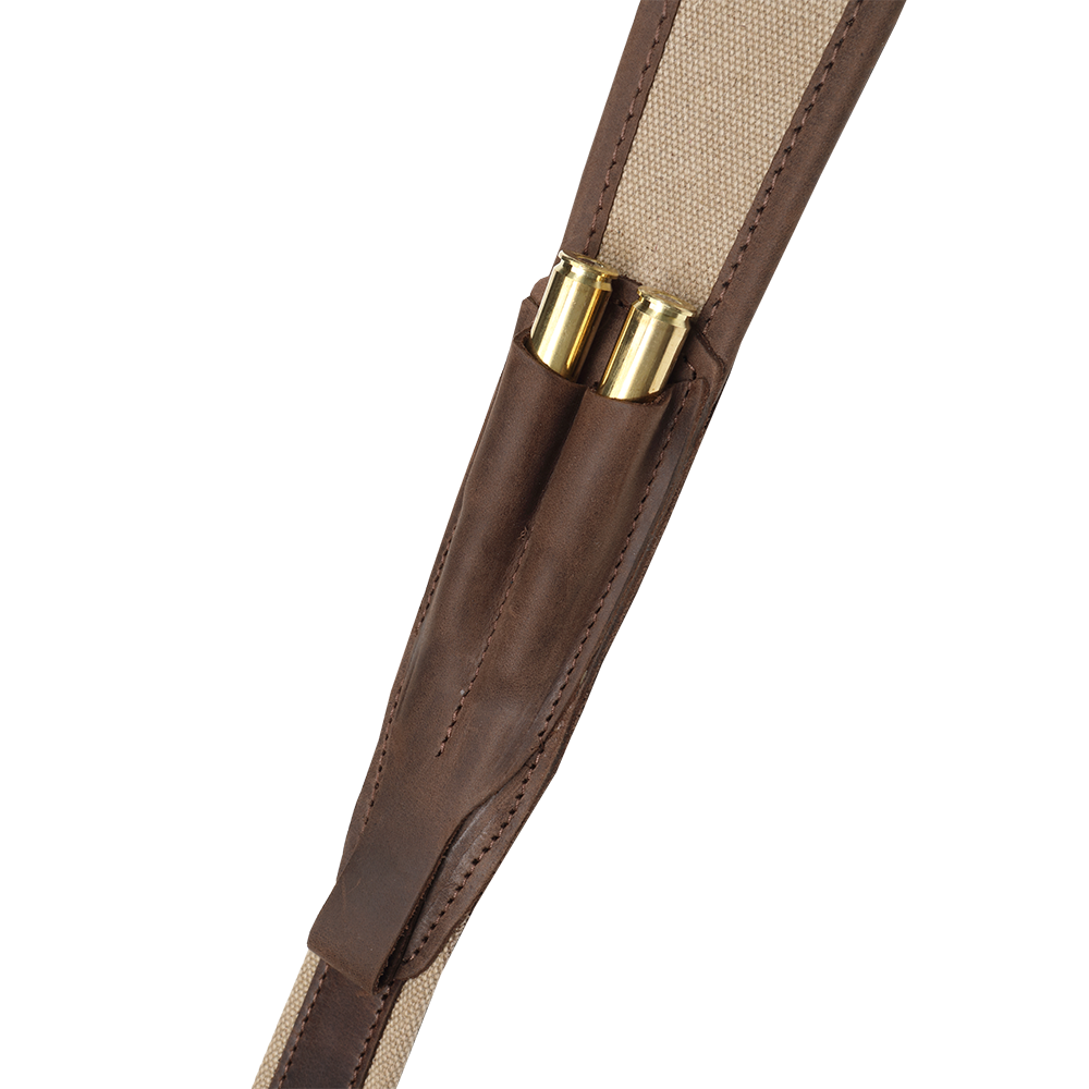 Pasek ze skóry i brezentu, podszyty neoprenem. Posiada ładownicę na 2 sztuki amunicji kulowej, regulowaną długość oraz ciche zapięcia.
