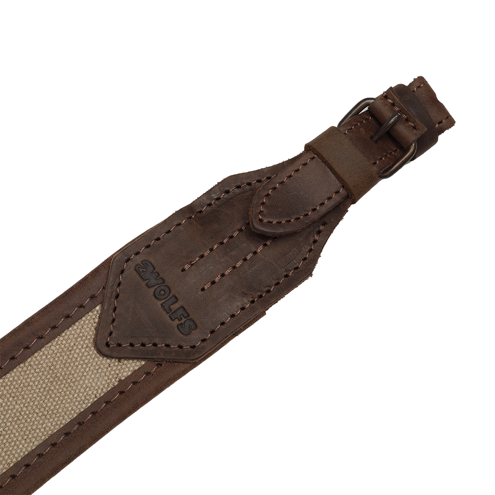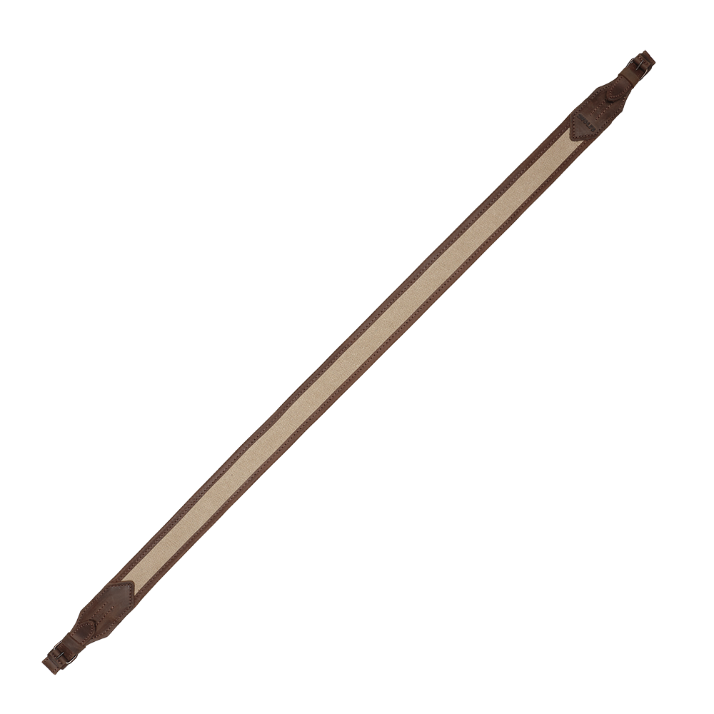 Pas do broni myśliwskiej z brezentu, podszyty neoprenem obszytym skórzaną lamówką co ogranicza zsuwanie się broni z ramienia oraz wzmacniany szwami. Posiada klasyczne zapięcie.