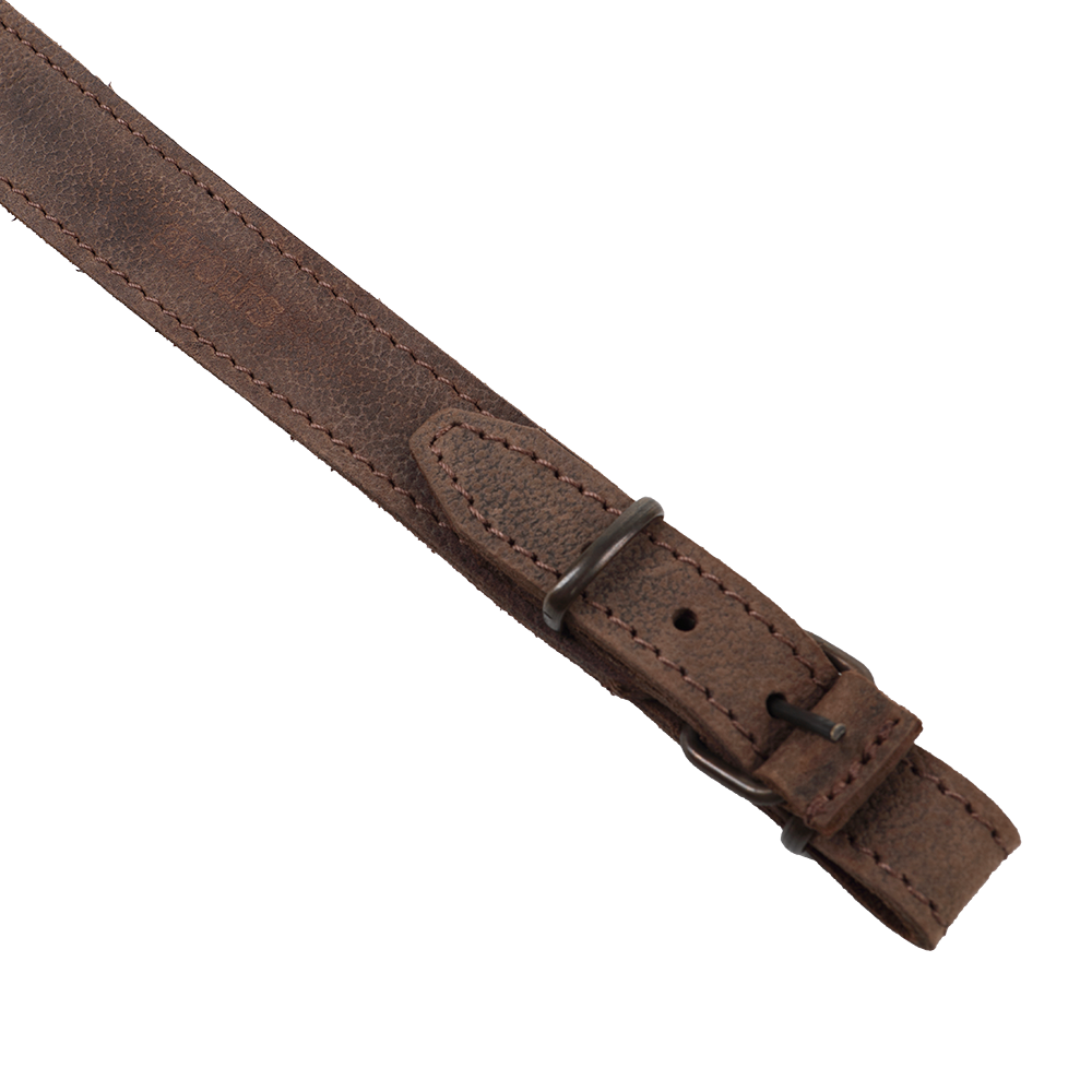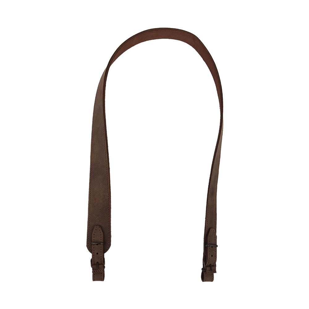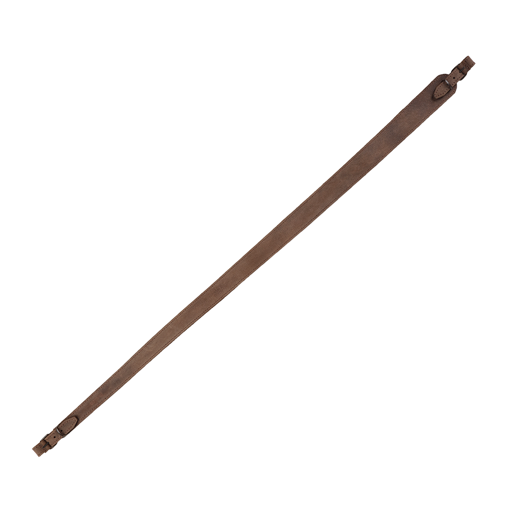 Pas do broni myśliwskiej zwężany, zszyty z dwóch warstw skóry oraz wzmacniany szwami.