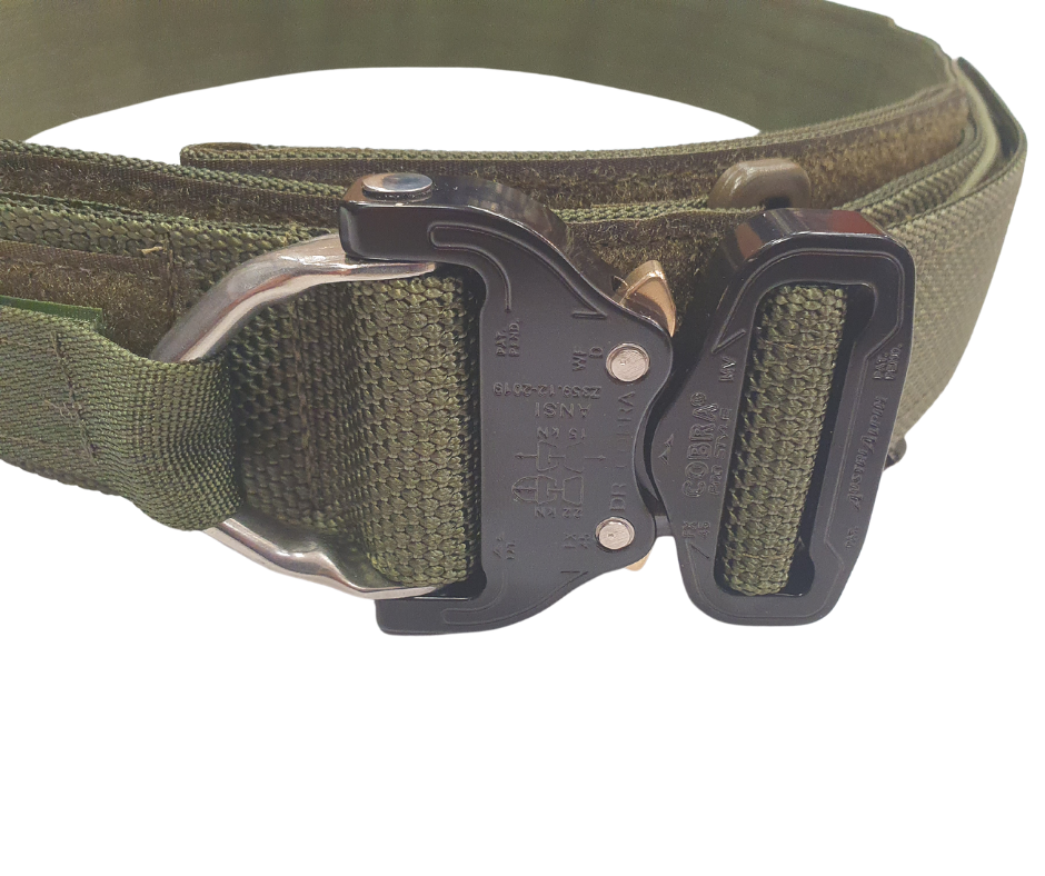Pas zewnętrzny ma klamrę COBRA 45mm firmy AustriAlpin, która zapewnia płynną regulację i pewne trzymanie. Cały pas wyposażony jest w małe i duże molle, dzięki którym możesz przypiąć oporządzenie bez obaw. Multitool, latarkę czy kaburę z pistoletem będziesz mieć zawsze pod ręką.