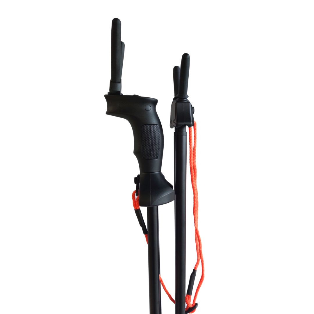 Ergonomiczne piankowe uchwyty oraz gumowana stopka zapewniają pewny chwyt i wygodę użytkowania. Odłączana widełka oraz regulowana linka pozwalają na dostosowanie kąta rozstawu, co zwiększa uniwersalność pastorału w różnorodnych warunkach.