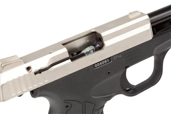 Ogłuszający huk i odrzut zamka do tyłu sprawią wrażenie, że strzelający posługuje się prawdziwą bronią palną. Wrażenie to potęguje wyrzucana przez wyrzutnik łuska, która z charakterystycznym brzękiem ląduje na podłożu. Po opróżnieniu magazynka i ostatnim strzale, zamek pozostaje tak jak w broni palnej, w tylnym położeniu. Wówczas, po włożeniu załadowanego magazynka, wystarczy przesunąć dźwignię zrzutu zamka, aby w ułamku sekundy pistolet był znów gotowy do strzału. Wygodnie umiejscowiony zrzut zamka umożliwia bardzo szybkie wprowadzenie kartridża z nowego magazynka do komory.