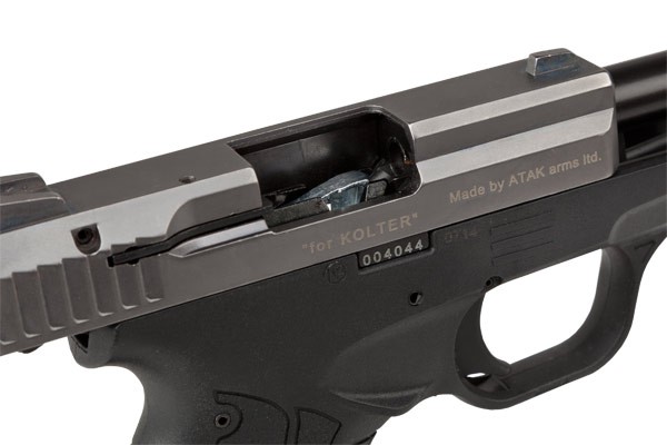 Pistolet posiada zewnętrzny bezpiecznik nastawny, zapobiegający przypadkowemu wystrzałowi.