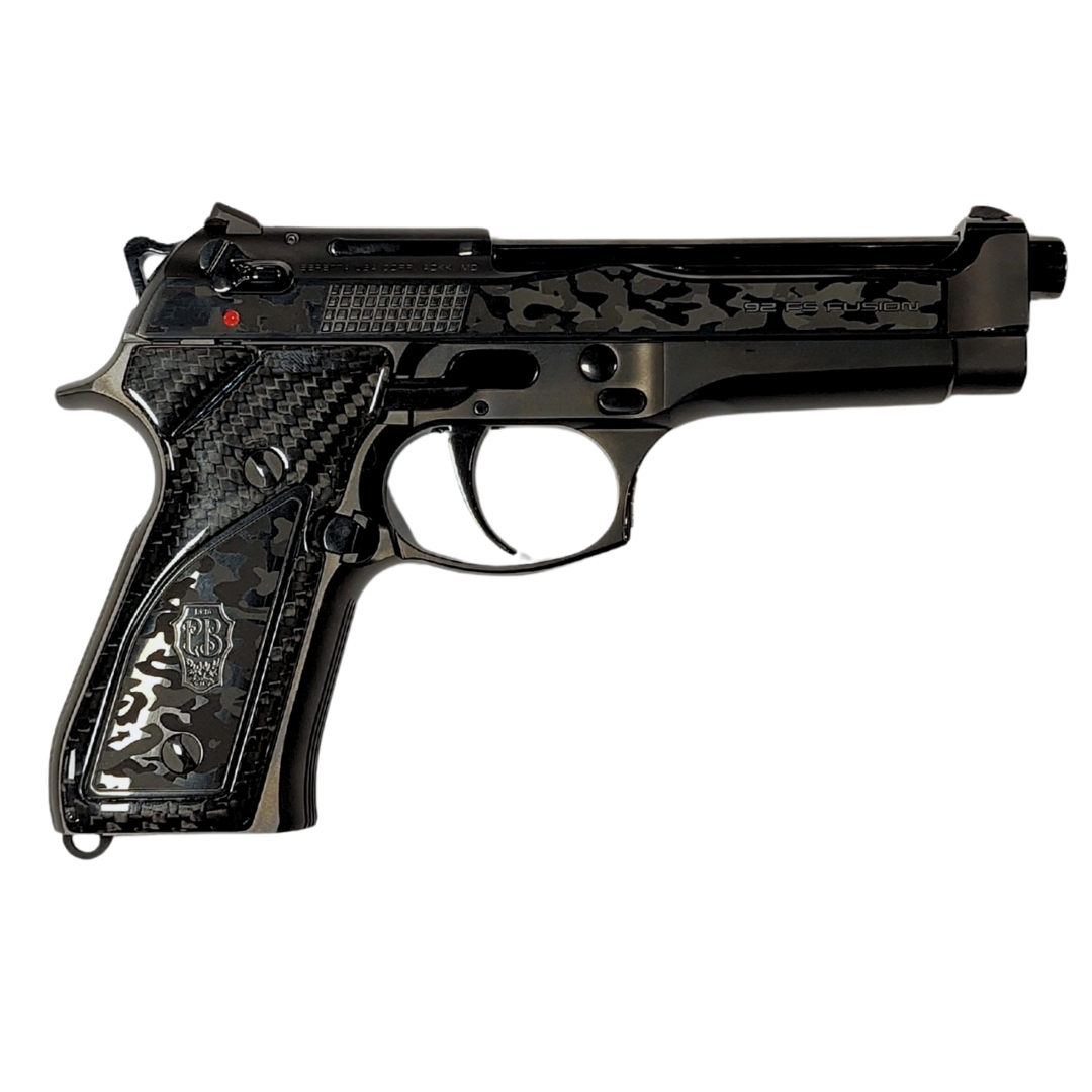 Fusion Black jest dostarczany z luksusowymi akcesoriami, w tym dwoma magazynkami, zestawem do czyszczenia z rękojeścią z włókna węglowego oraz ręcznie wykonaną obudową wykonaną przez mistrzowskie atelier Beretty.
