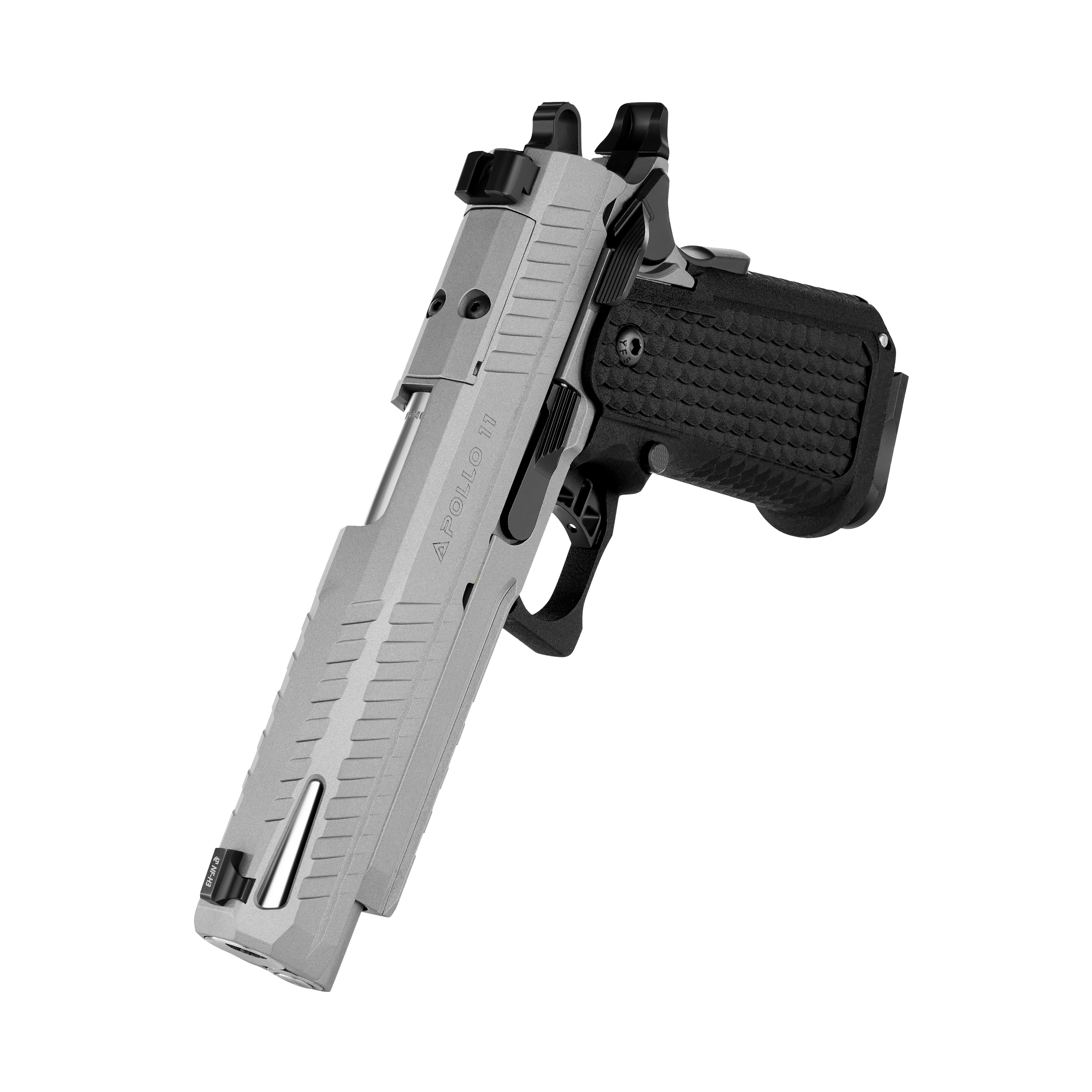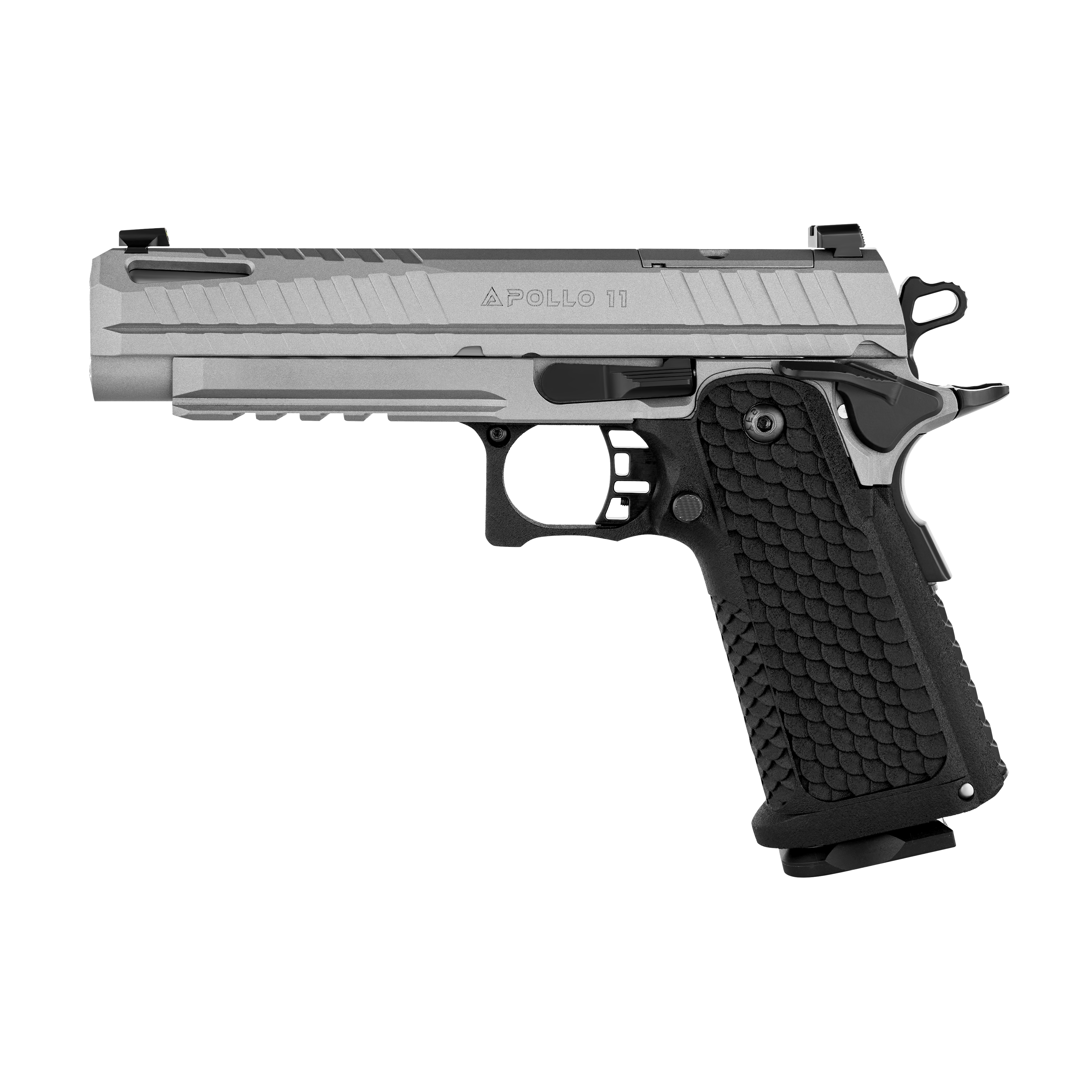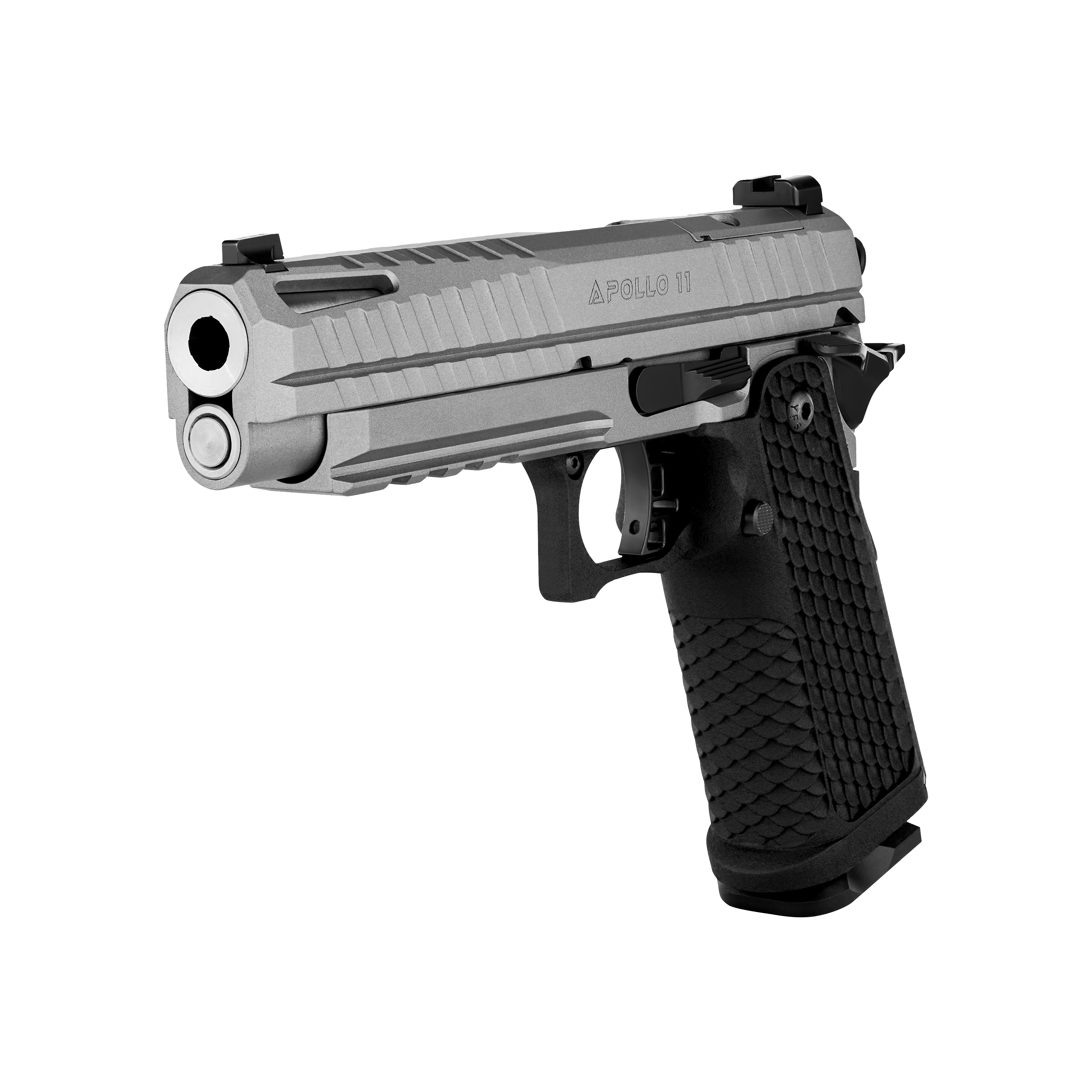 Ergonomia pistoletu Apollo 11 jest zoptymalizowana z myślą o wygodzie użytkownika: przedłużona ostroga umożliwia pewny i wysoki chwyt, a głębokie nacięcia na zamku znacznie ułatwiają obsługę. Pistolet jest także przystosowany do montażu kolimatora w standardzie RMSc bez konieczności stosowania adapterów, co sprawia, że można szybko i łatwo wzbogacić go o dodatkowe akcesoria optyczne.