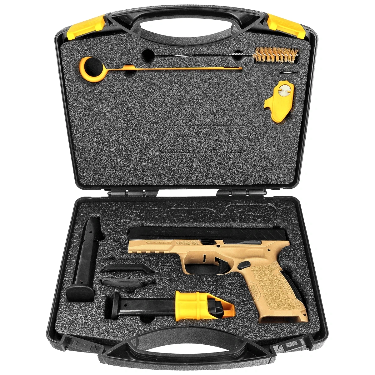 W zestawie znajdziesz dwa magazynki (15-nabojowe), wymienne nakładki na chwyt, lejek Magwell oraz solidną walizkę transportową. Wszystko, co potrzebne, by zacząć korzystać z TRX9 od razu po wyjęciu z opakowania.