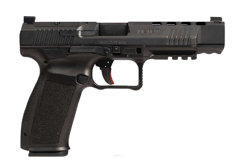Ewolucja doskonałości! Seria METE zawiera zmiany zaprojektowane w celu przeniesienia świetnego produktu na wyższy poziom pistoletów sportowych. Zmiany zewnętrzne są subtelne, ale odczuwalne podczas obsługi broni. Zintegrowane rozszerzenie gniazda magazynka pozwala na płynniejszą zmianę magazynka i dodatkowe wsparcie chwytu, dwustronny zrzut zamka, wycięcie zamka pod optykę nie wymagające zdejmowania przyrządów celowniczych, ergonomicznie przeprojektowany beavertail. Cały pistolet jest modułowy w tym sensie, że można go całkowicie zdemontować, a następnie ponownie złożyć z łatwością, używając tylko narzędzi w zestawie (m.in. dźwignia zrzutu zamka bez pinów).