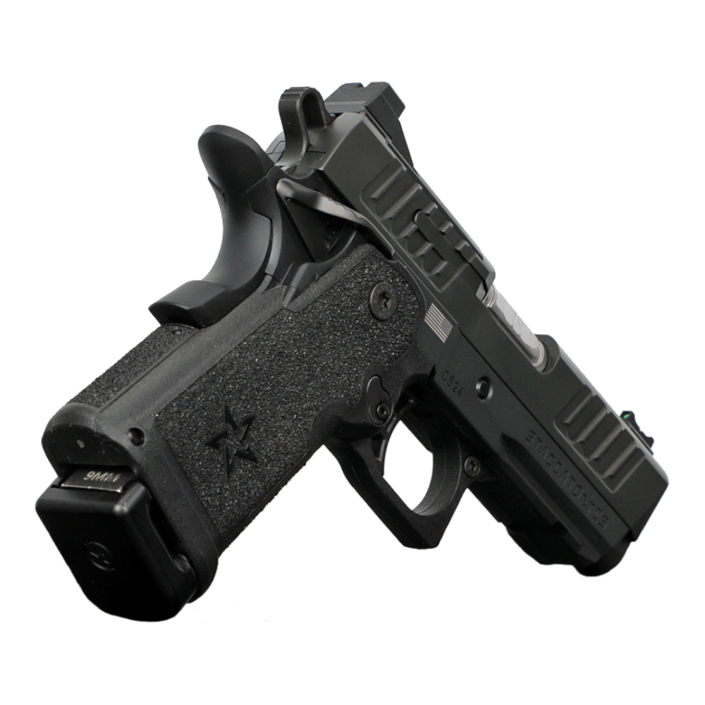 Staccato model CS to pistolet z serii heavy duty dostosowany do pracy w najtrudniejszych warunkach, zachowując precyzyjną pracę mechanizmów charakterystyczną dla tej marki. Marka Staccato wymyśliła i opatentowała platformę 2011, która różni się przede wszystkim dwurzędowym magazynkiem od pierwowzoru jakim jest 1911. Warto zauważyć, że Staccato jako jedyna firma, ma prawo do używania nazwy 2011. W modelu CS otrzymujemy dwa magazynki o pojemności 17 naboi.