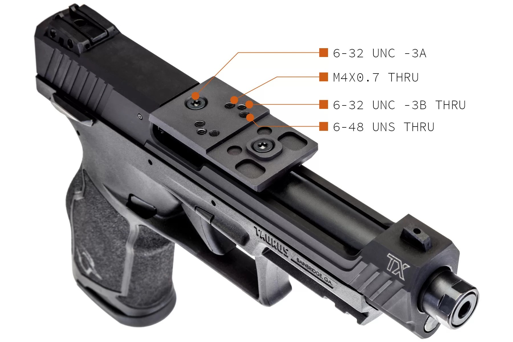 Pistolet TaurusTX™ 22 Competition jest gotowy do montażu tłumika dźwięku. Lufa posiada gwint 1/2-28, który jest kompatybilny z większością tłumików dźwięku kalibru .22LR dostępnych na rynku.