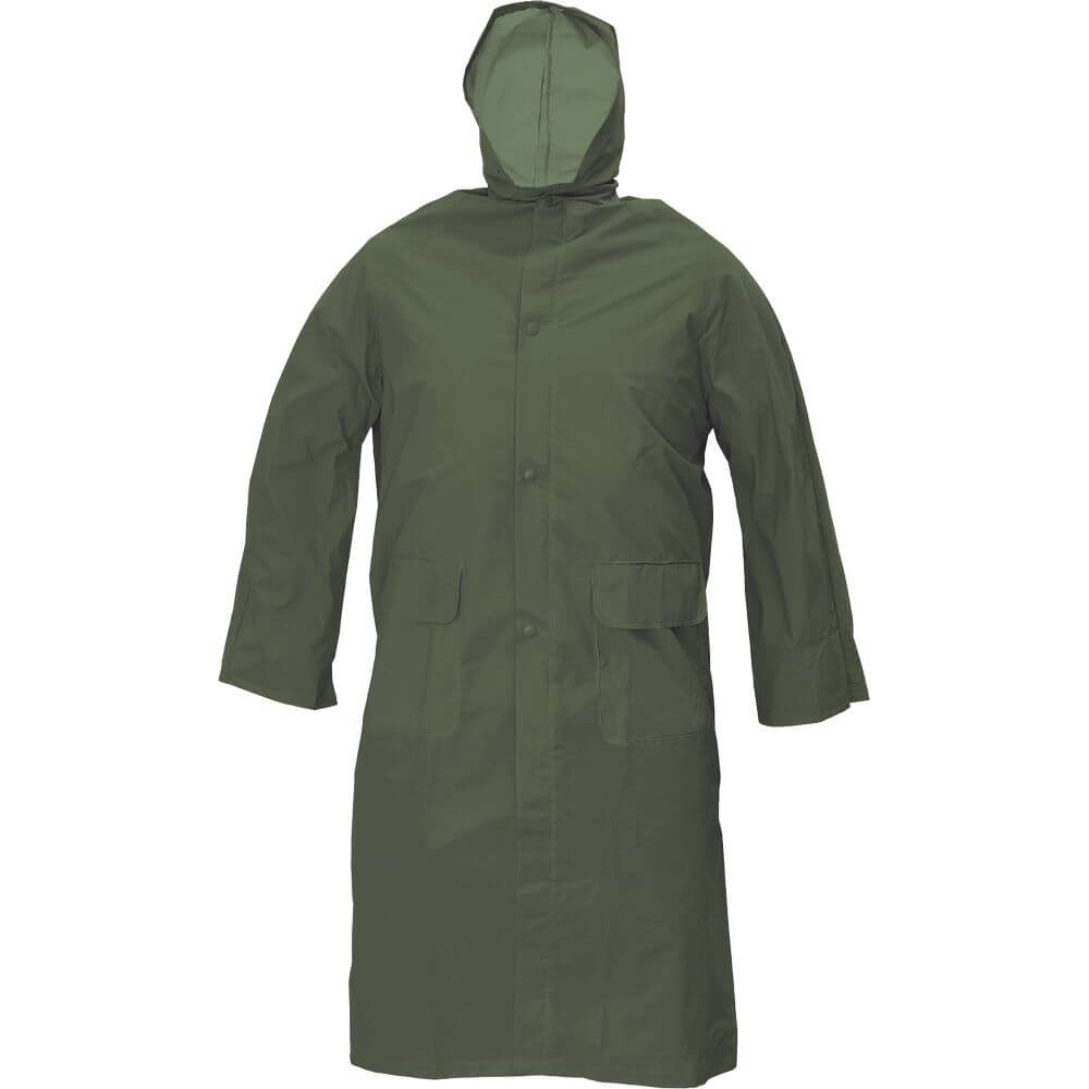 Płaszcz CETUS dedykowany jest do ochrony odzieży przed deszczem i wiatrem. Przydatny w turystyce oraz do użytku hobbystycznego. Produkt jest szczelny, nieprzemakalny i odporny na wiatr. Zawdzięcza to trójwarstwowemu PCV, z jakiego został wykonany oraz poliestrowej podszewce. Zapinany jest podwójnie - na suwak i plisę z napami. Płaszcz posiada długi regulowany rękaw oraz duży kaptur ściągany na troczki. Wyposażony w zewnętrzną kieszeń z chroniącą klapką.