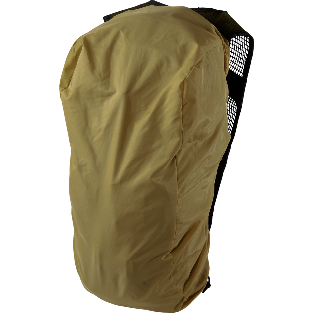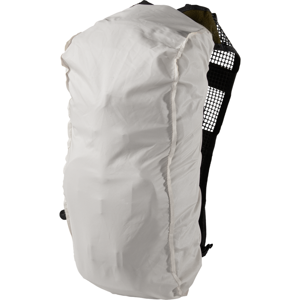 Posiada dwustronny, biało-zielony pokrowiec przeciwdeszczowy, który zakładamy na kolbę i plecak.