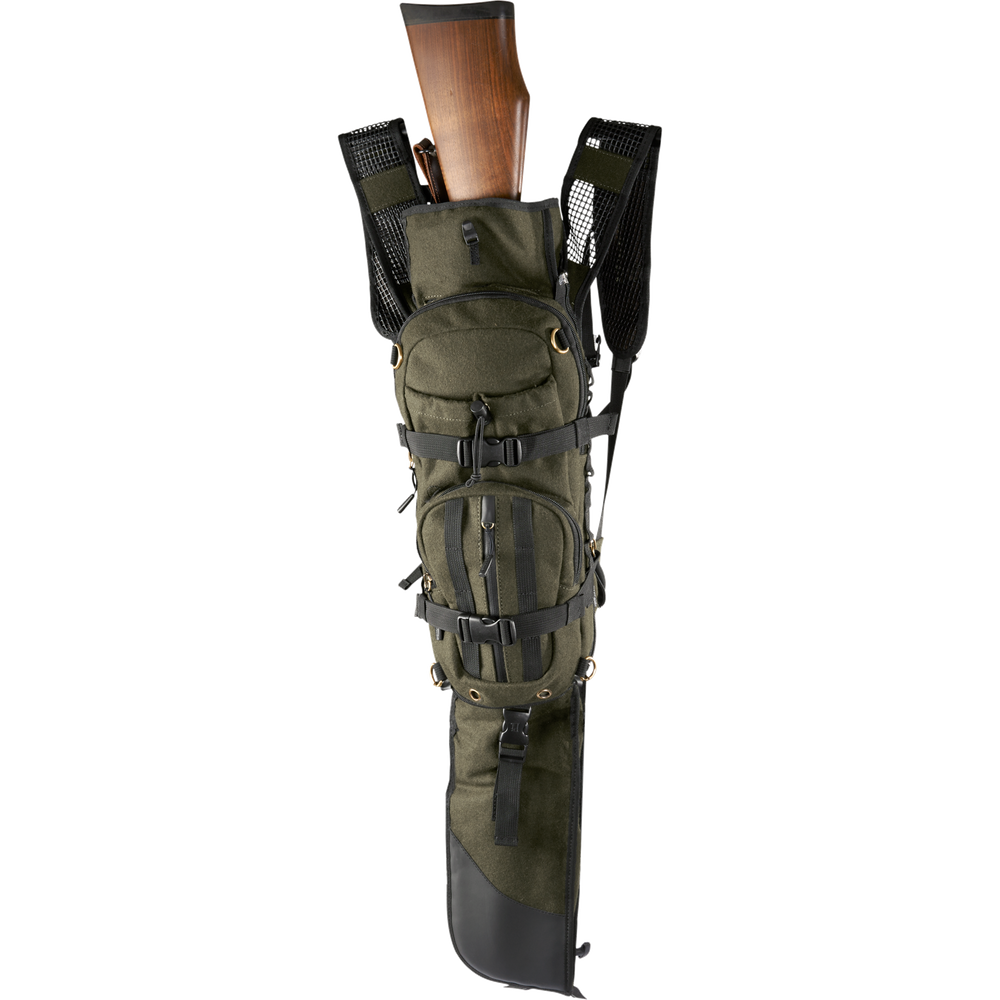 Poręczny i fukcjonalny plecak myśliwski z dołączonym uchwytem na broń. Gdy uchwyt jest niepotrzebny, można go odpiąć. Plecak jest zaprojektowany specjalnie dla miłośników łowiectwa, dlatego jest cichy, wyposażony w przeciwdeszczowy pokrowiec, ma mnóstwo troków i kieszeni.