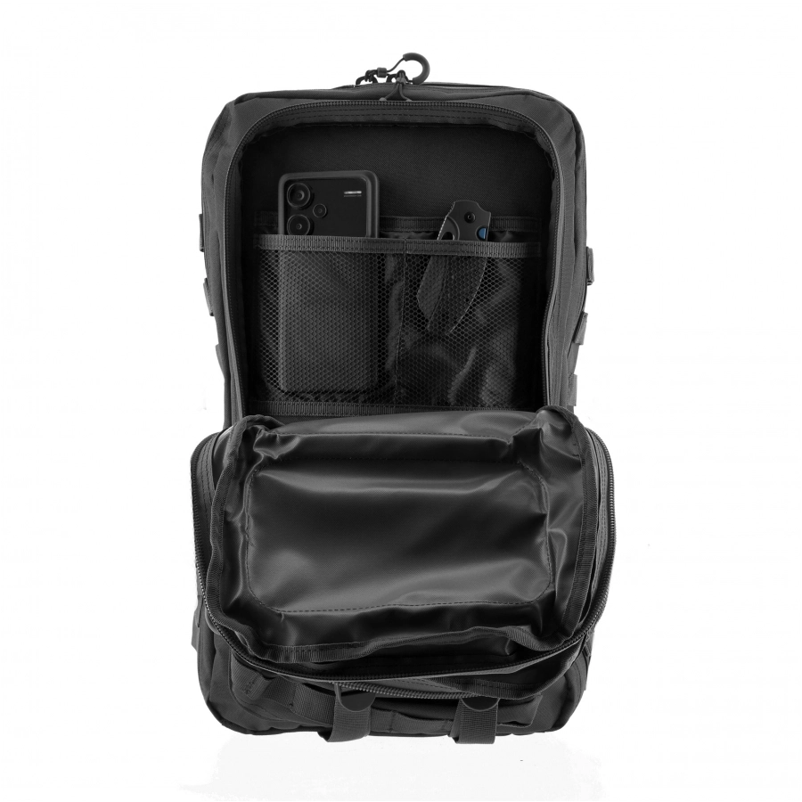 System MOLLE/PALS umożliwia łatwe dopasowanie plecaka do własnych potrzeb. Możesz rozbudować go o dodatkowe kieszenie lub zasobniki, tworząc konfigurację dopasowaną do konkretnego zastosowania – od lekkiego zestawu dziennego po bardziej wymagające scenariusze.