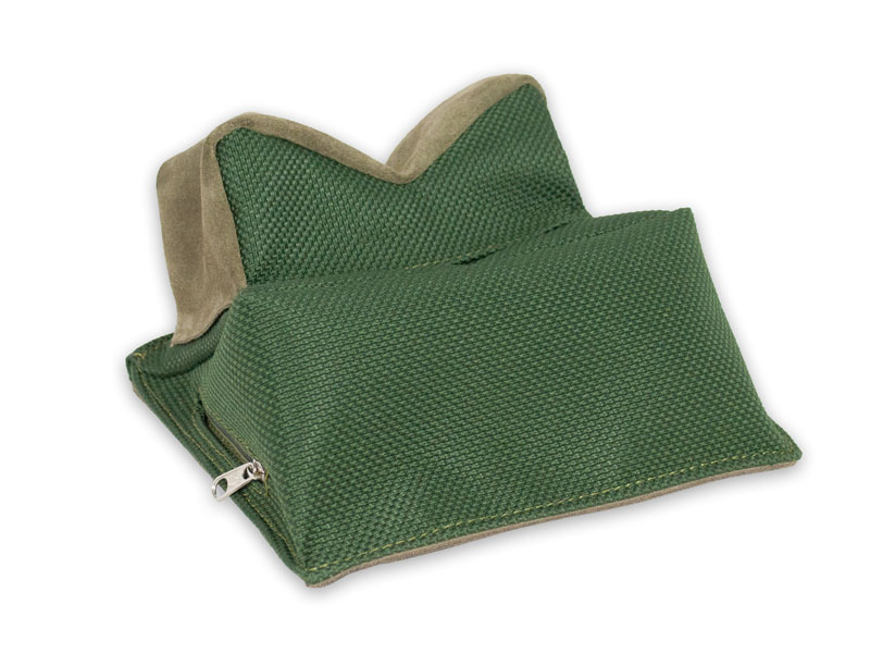 Poduszki strzeleckie do przestrzeliwania broni - komplet. Wykonane z cordury i skóry welurowej. Z boku każdej poduszki znajduje się otwór zamykany zamkiem błyskawicznym, umożliwiający wsypanie wypełnienia.