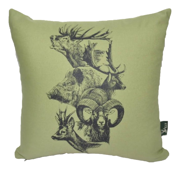 Poduszka o wymiarach 40 x 40 cm wykonana z wysokiej jakości bawełny w kolorze zielonym z nadrukiem.