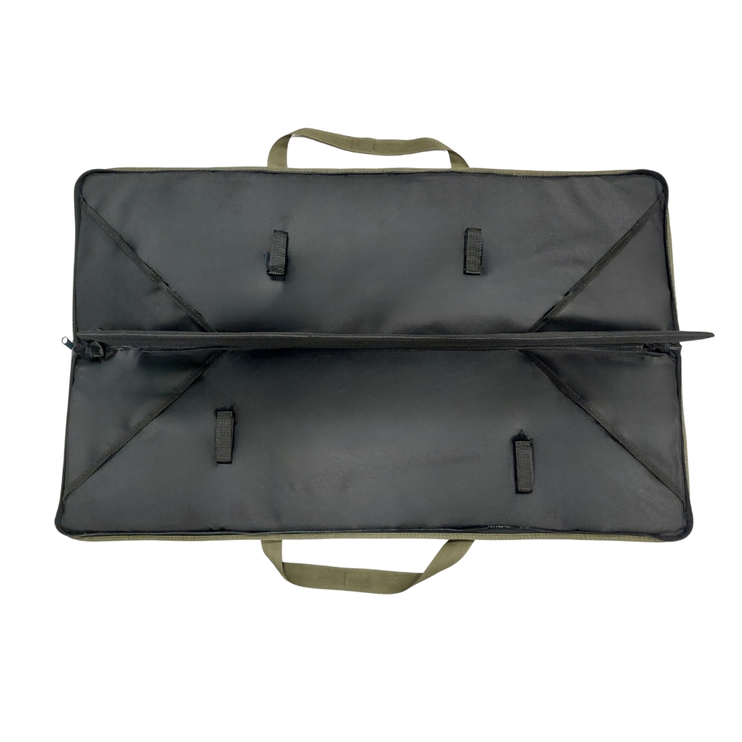 Wytrzymała tkanina zewnętrzna chroni zawartość przed uszkodzeniami mechanicznymi oraz zabrudzeniami, a miękkie wypełnienie wewnątrz skutecznie amortyzuje wstrząsy i zabezpiecza broń w trakcie transportu. Rozkładana konstrukcja umożliwia pełny dostęp do wnętrza, co ułatwia wygodne układanie sprzętu oraz szybkie przygotowanie do strzelania.