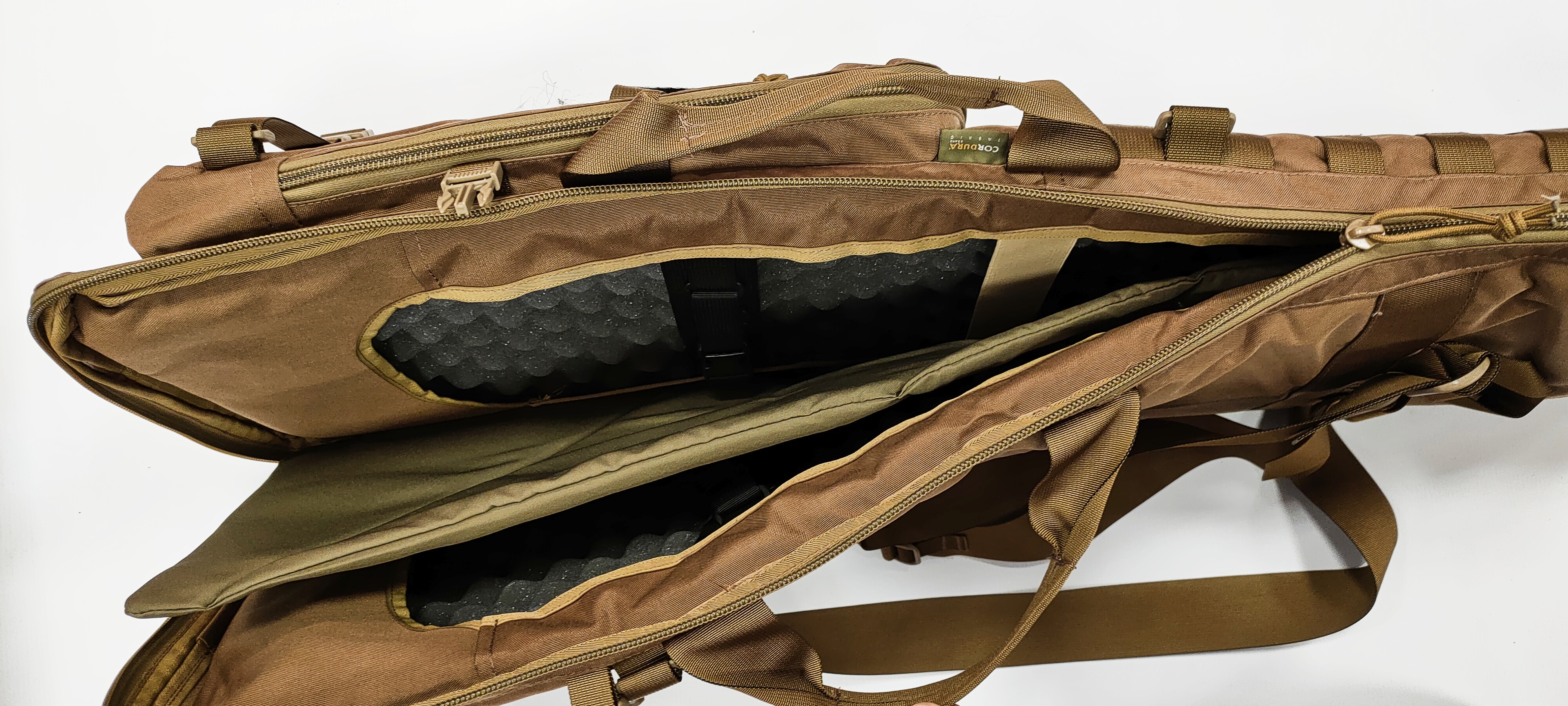 Dzięki przegrodzie wewnątrz pokrowca, możliwe jest umieszczenie dwóch sztuk broni w pokrowcu. Przegroda chroni przed stykaniem się sprzętu ze sobą.