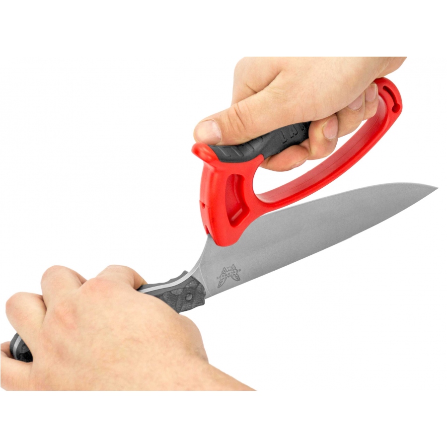 Ostrzenie za pomocą takiej osełki jest niezwykle proste i nie wymaga doświadczenia. Aby wyostrzyć krawędź tnącą, wystarczy jedynie kilka razy przeciągnąć nóż przez szczelinę ostrzącą, aż do uzyskania satysfakcjonującej ostrości.