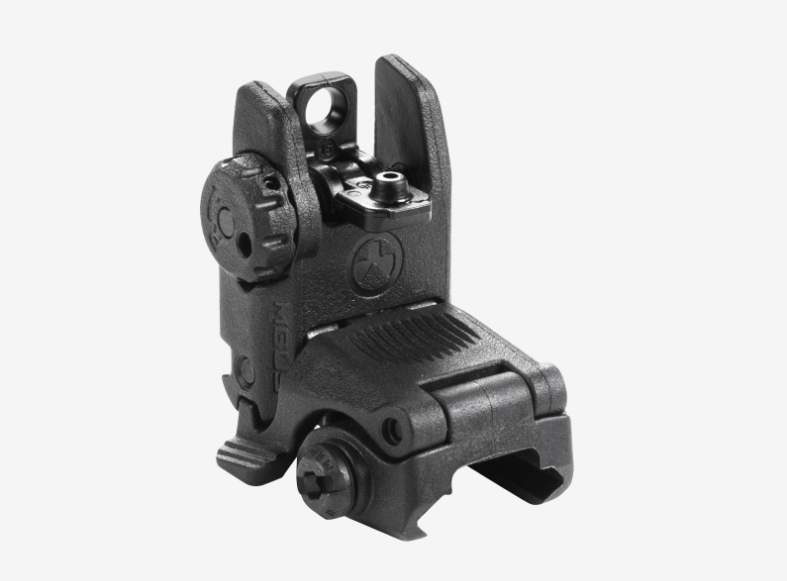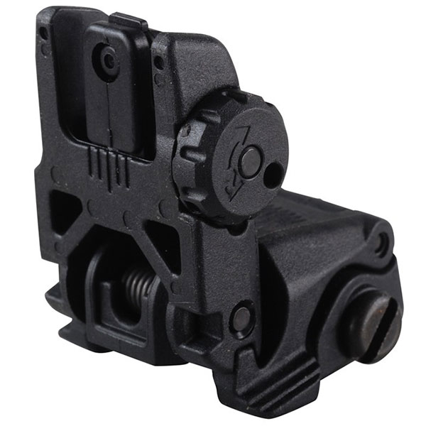 MBUS Sight-rear to składany, polimerowy przeziernik montowany na szynie picatinny 1913. MBUS to lekkie i szybkie w obsłudze mechaniczne przyrządy zapasowe, doskonałe do użytku z celownikami optoelektronicznymi.