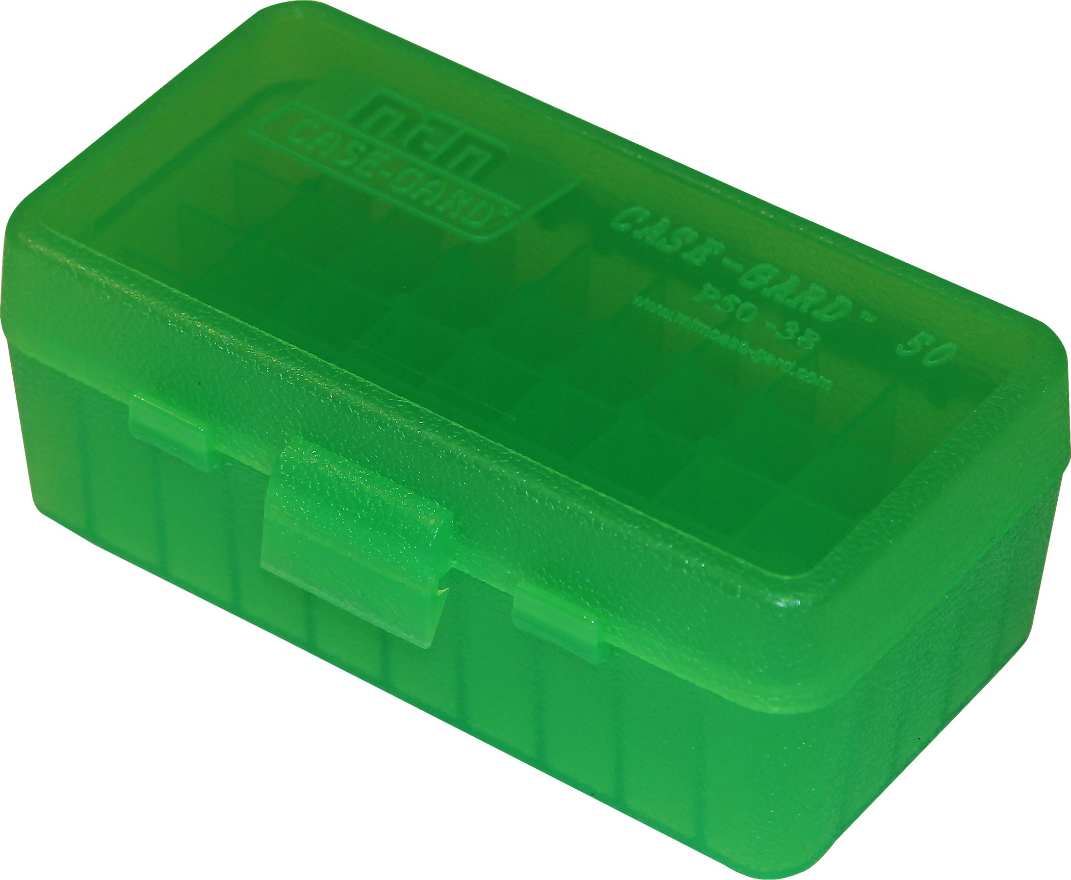 Rewelacyjne pudełko na amunicję do broni krótkiej. Plastikowe, kolor zielony półprzezroczysty, pojemność 50sztuk.