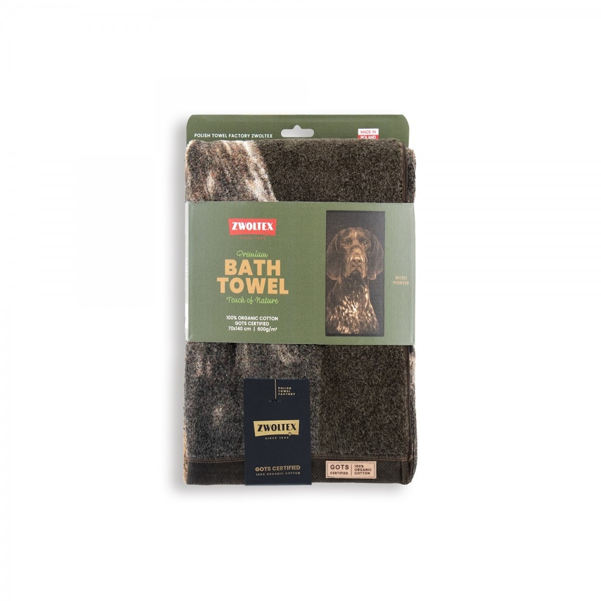 Wprowadź do swojej łazienki nutę elegancji inspirowanej światem natury. Ręcznik WYŻEŁ to połączenie ponadczasowego stylu z wyjątkowym nadrukiem przedstawiającym szlachetną sylwetkę psa myśliwskiego. Realistyczne detale i wyraziste spojrzenie nadają mu charakter, a stonowana kolorystyka sprawia, że harmonijnie dopełni zarówno wnętrza klasyczne, jak i nowoczesne.