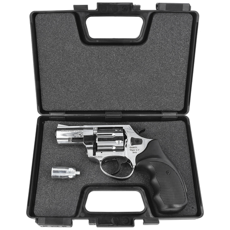 EKOL Viper 2.5" K-6L, rewolwer alarmowy z 2.5 calową lufą na amunicję hukową bocznego zapłonu w kal. 6 mm (long). Przedłużony nabój hukowy (long), daje mocniejszy, realistyczny huk wystrzału w stosunku do kapiszonów w kal. 6 mm (short). Rewolwer model K-6L to urządzenie do samoobrony skutecznie odstraszające potencjalnych napastników. W zestawie nasadka do wystrzeliwania rac stosowana m.in. w ratownictwie do wzywania pomocy, sprawdzi się również podczas zabawy sylwestrowej.