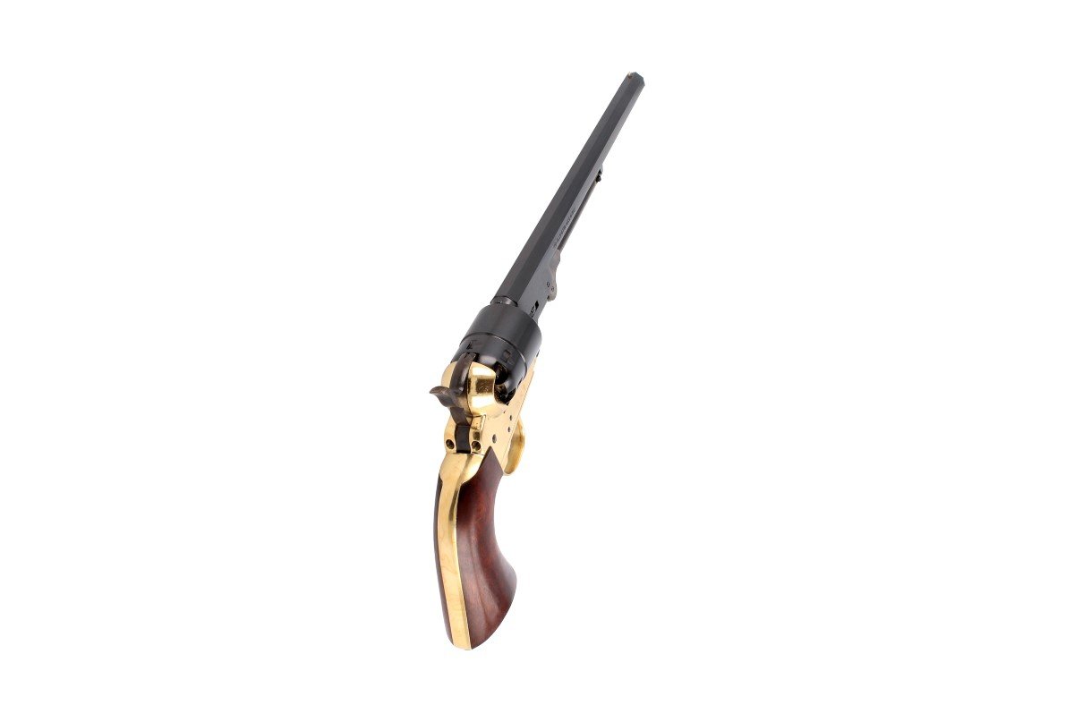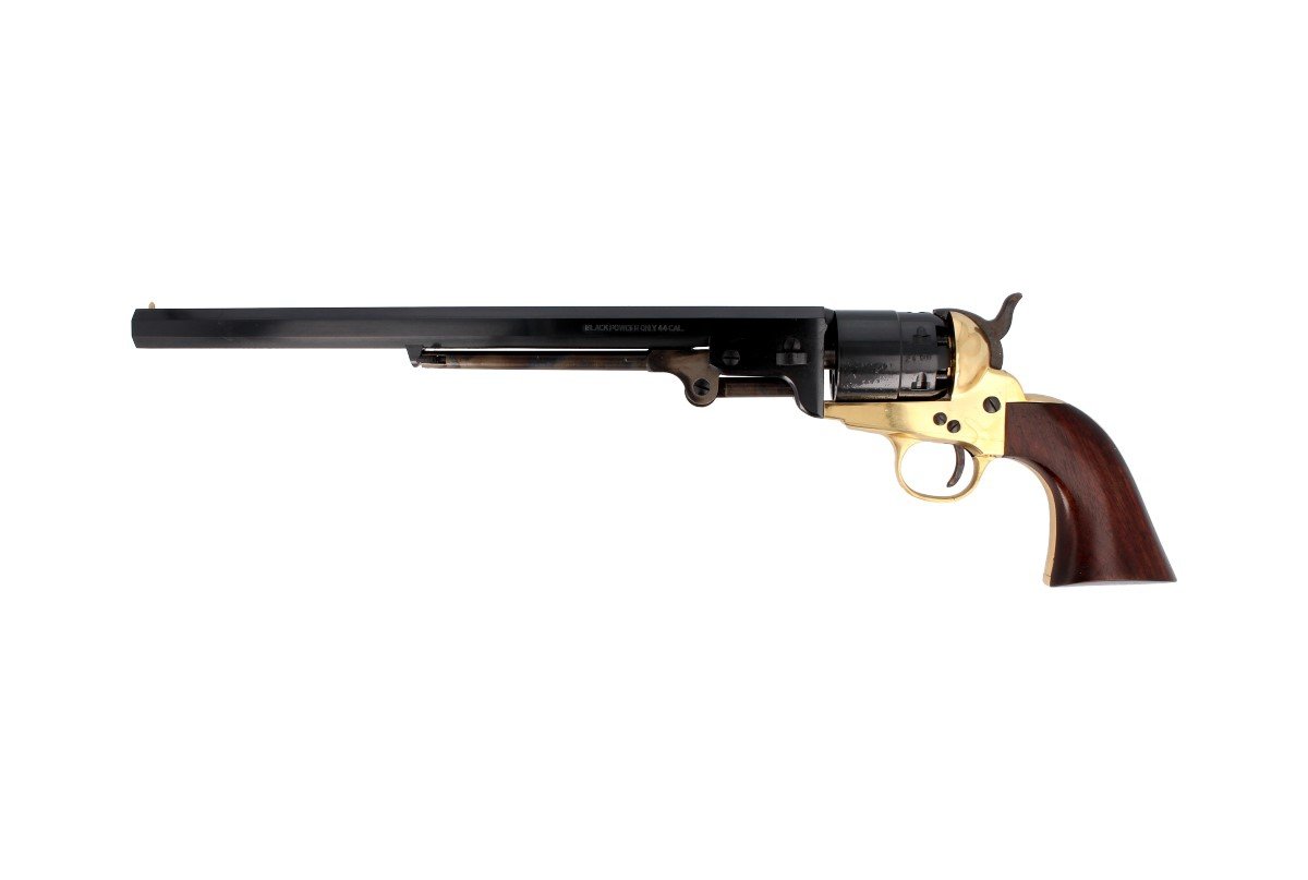 1851 Colt REB Nord Navy Carbine .44, model z najdłuższą 12 calową lufą. Sześciostrzałowy kapiszonowy rewolwer czarnoprochowy Samuela Colta w kalibrze .44, ładowany odprzodowo z mosiężną ramą otwartą.