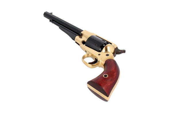 1858 Remington Texas kal. 44 , sześciostrzałowy kapiszonowy rewolwer czarnoprochowy ładowany odprzodowo z ramą mosiężną zamkniętą oksydowaną na czarno. Produkowany w dwóch kalibrach, kal. 36 dla marynarki - model Navy oraz w kal. 44 dla armii - model Army.