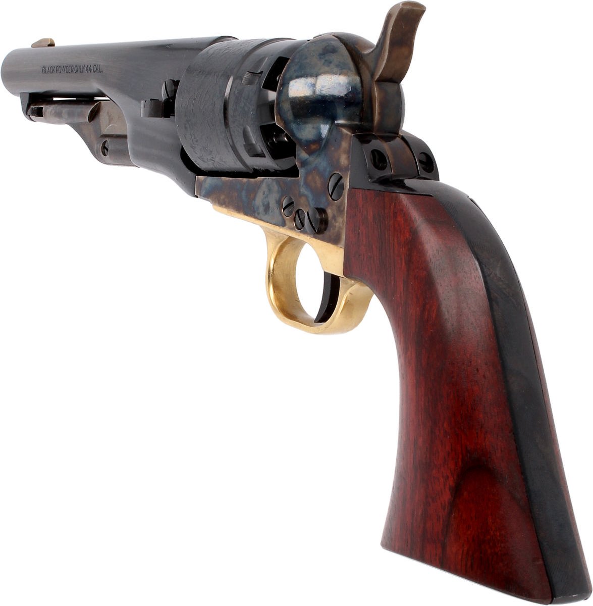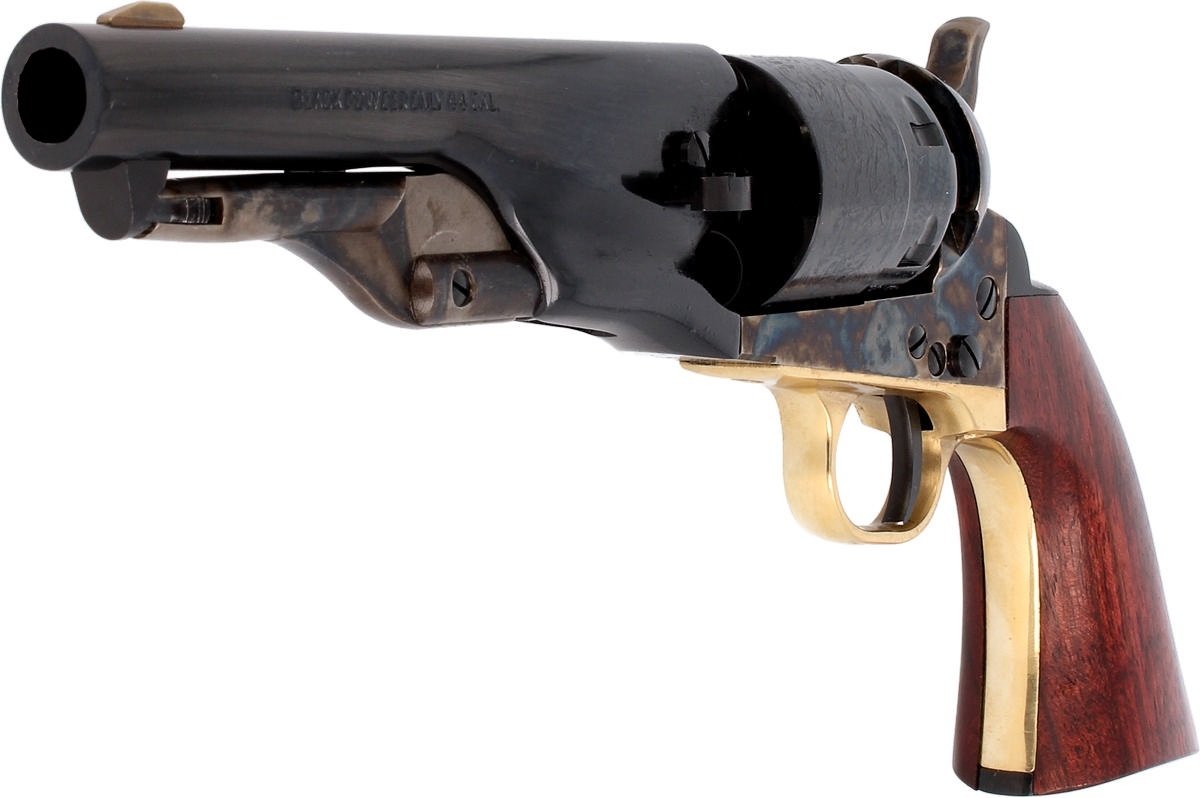 Colt 1860 Army Sheriff Steel .44 sześciostrzałowy kapiszonowy rewolwer czarnoprochowy Samuela Colta w kalibrze .44. Ładowany odprzodowo z ramą stalową otwartą oraz grawerowanym bębnem - sceną bitwy morskiej. Wersja Sheriff z krótką lufą 5.375 cala – doskonały wybór do szybkiego strzelania podczas zawodów dynamicznych.