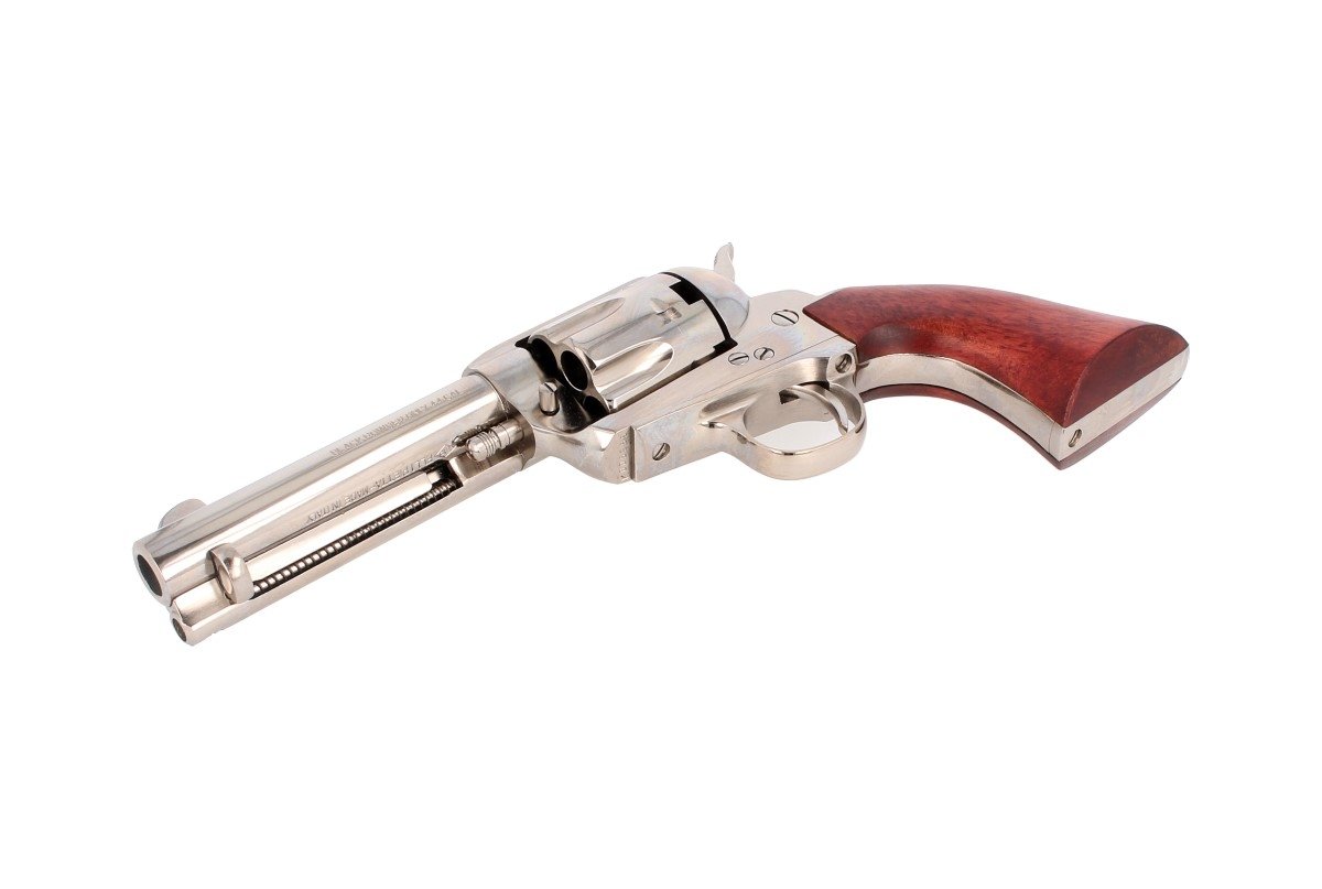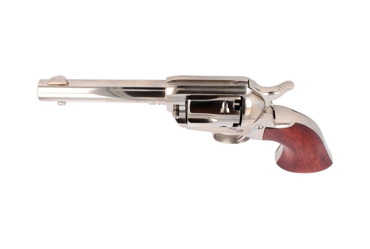 1873 Single Action Army .44 znany jako Peacemaker, to najsłynniejszy rewolwer Samuela Colta - rewolwer, który wygrał Dziki Zachód. Sześciostrzałowy kapiszonowy rewolwer czarnoprochowy w kalibrze .44, ładowany odprzodowo z ramą stalową niklowaną. Lufa 4.75 cala - najbardziej poręczna długość do szybkiego strzelania na krótkich dystansach.