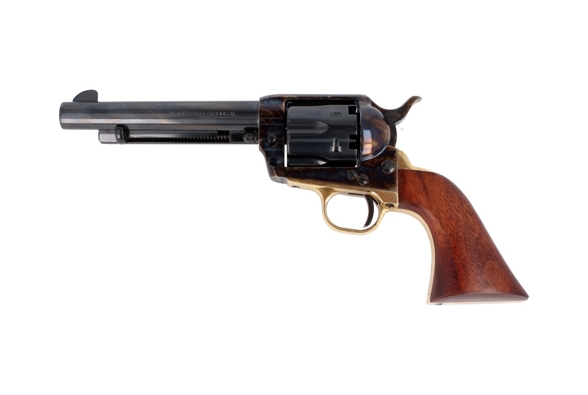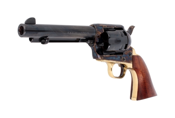 1873 Single Action Army 5½" barrel .44 to najsłynniejszy rewolwer Samuela Colta znany jako Peacemaker - rewolwer, który wygrał Dziki Zachód. Sześciostrzałowy kapiszonowy rewolwer czarnoprochowy w kalibrze .44, ładowany odprzodowo z ramą stalową zamkniętą. Lufa 5.5 cala – doskonały wybór do szybkiego strzelania.