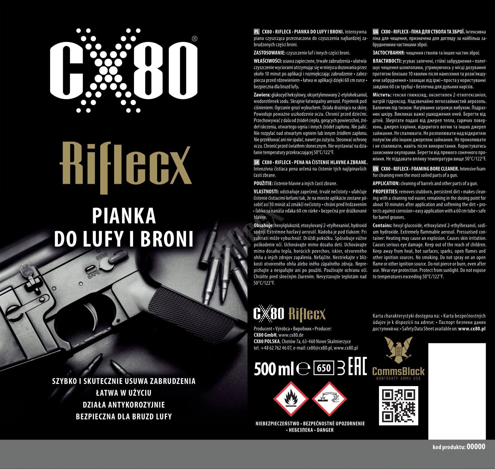 W przeciwieństwie do wielu innych pian - pianka RifleCX zachowuje gęstość przez cały czas działania- co przekłada się na dokładne wyczyszczenie lufy.