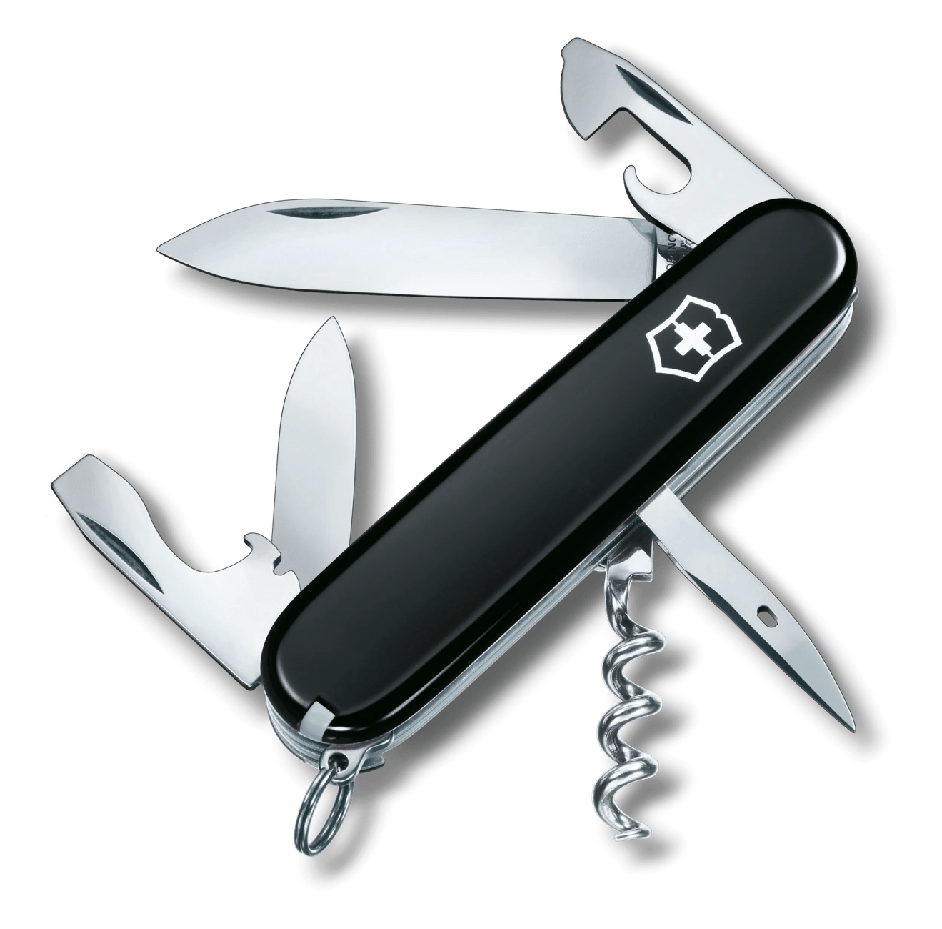 Duże ostrze / Małe ostrze / Korkociąg / Rozwiertak, szpikulec i szydło / Kółko do kluczy / Pęseta / Wykałaczka / Otwieracz do puszek / Otwieracz do kapsli / Śrubokręt 6 mm / Przyrząd do zdejmowania izolacji