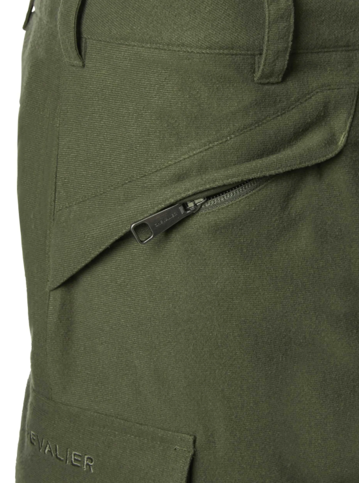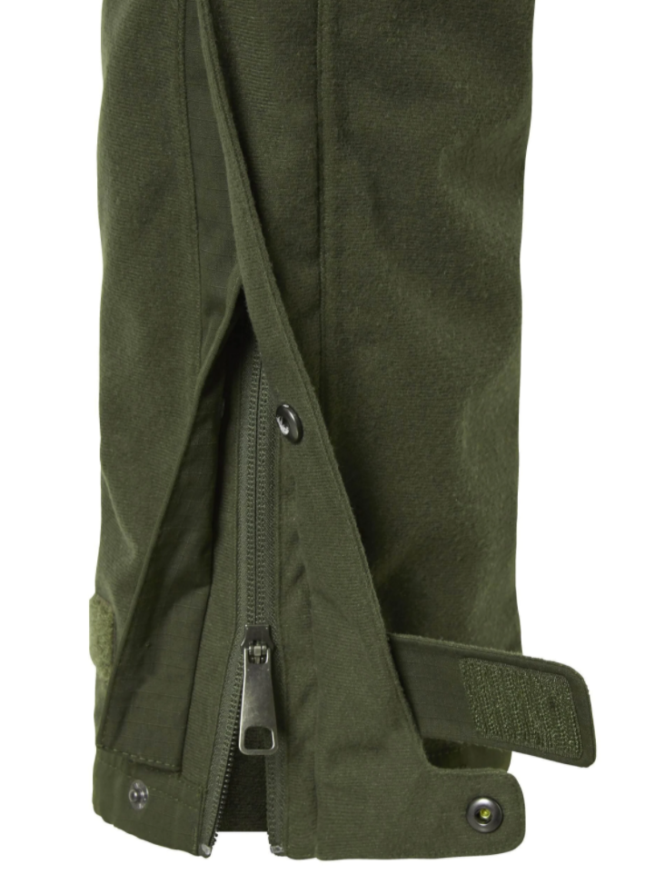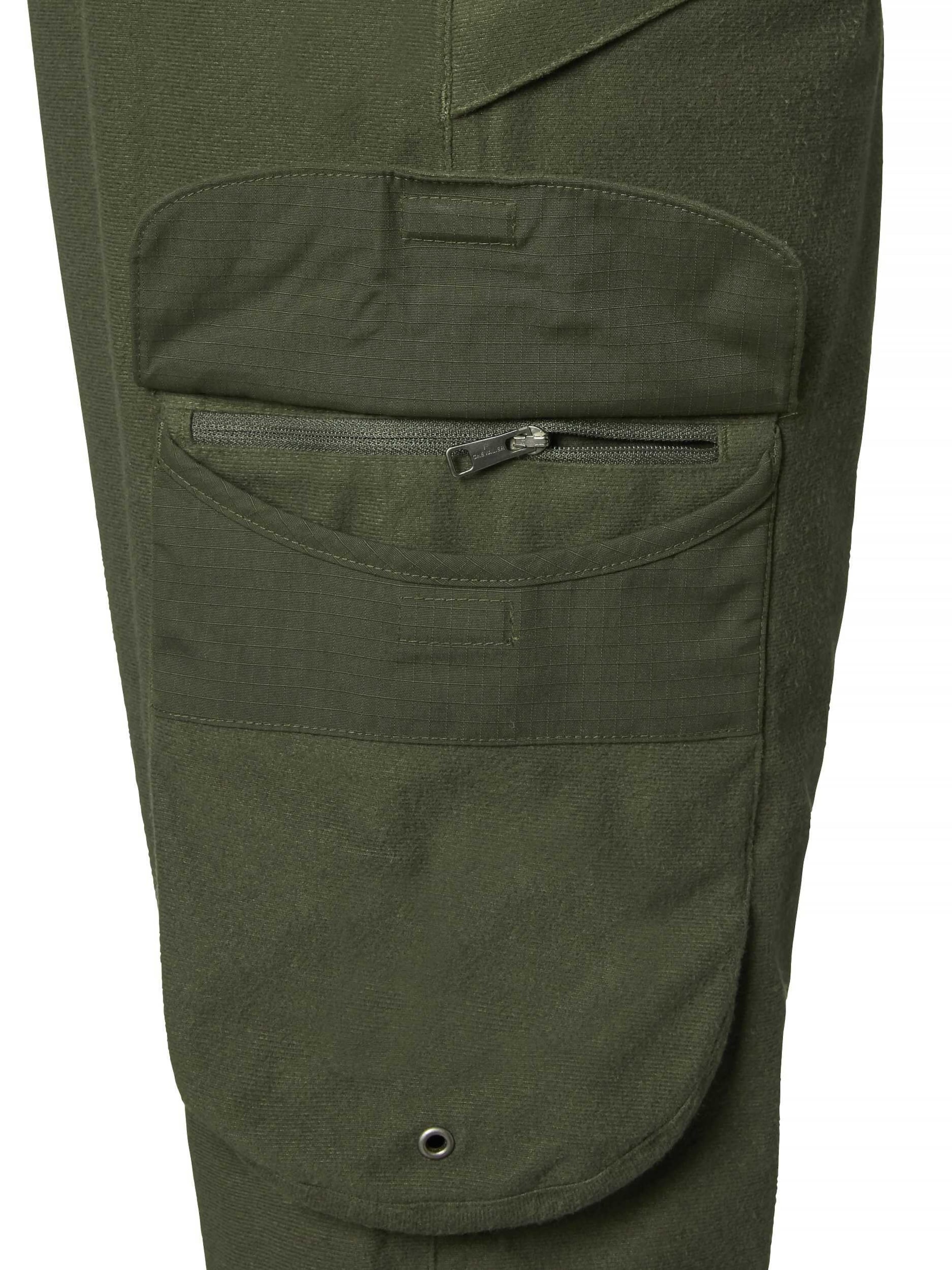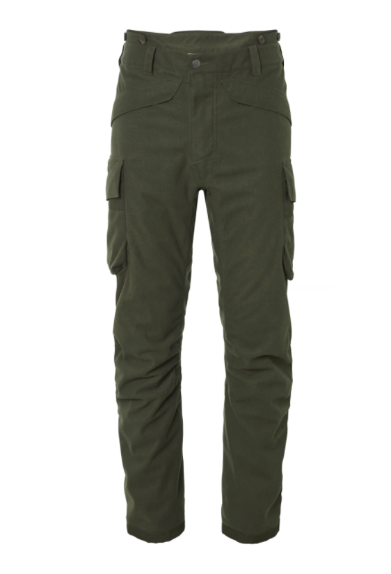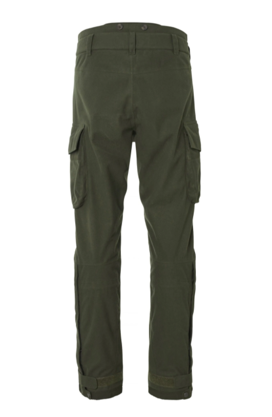 Spodnie Basset to ciepło wyściełane, wiatro- i wodoodporne spodnie myśliwskie wykonane z miękkiej, szczotkowanej tkaniny wierzchniej z poliestru z recyklingu. Spodnie są bardzo uniwersalne w różnych sytuacjach łowieckich i oferują ważne funkcje. Są wiatro- i wodoodporne oraz mają profilowane kolana dla maksymalnej swobody ruchu w terenie i w lesie. Talia jest podwyższona z tyłu, a pasek został zaprojektowany tak, aby można było szybko i łatwo dodać szelki, niezależnie od tego, czy używasz zapięcia na guziki, czy sprzączek. Spodnie mają solidne szlufki i kieszenie z przodu zapinane na zamek. Kieszenie na udach, prawa z zapinaną na zamek bezpieczną kieszenią. Wewnątrz nogawek zamki wentylacyjne. Nogawki zapinane są na wodoodporne dwukierunkowe zamki YKK, a końce wzmocnione są materiałem Cordura® Ripstop. Szerokość nogawki spodni można regulować za pomocą haczyka na końcu nogawki. Spodnie mają również haczyki na każdym końcu nogawki, które można zawiązać z obuwiem, aby utrzymać spodnie na miejscu. Kurtka i spodnie Basset tworzą razem ciepły kombinezon myśliwski, który jest cichy, wiatroszczelny i wodoodporny.