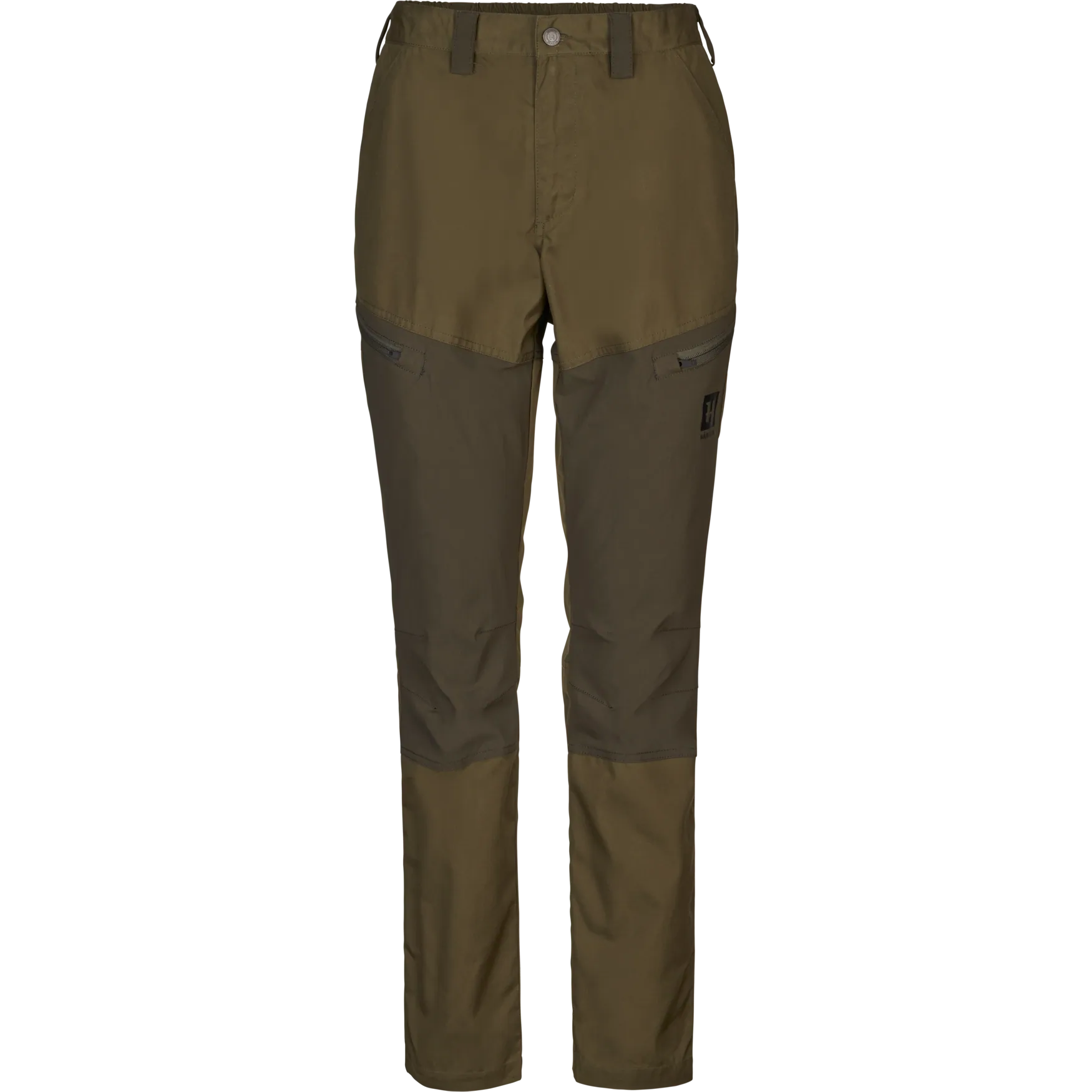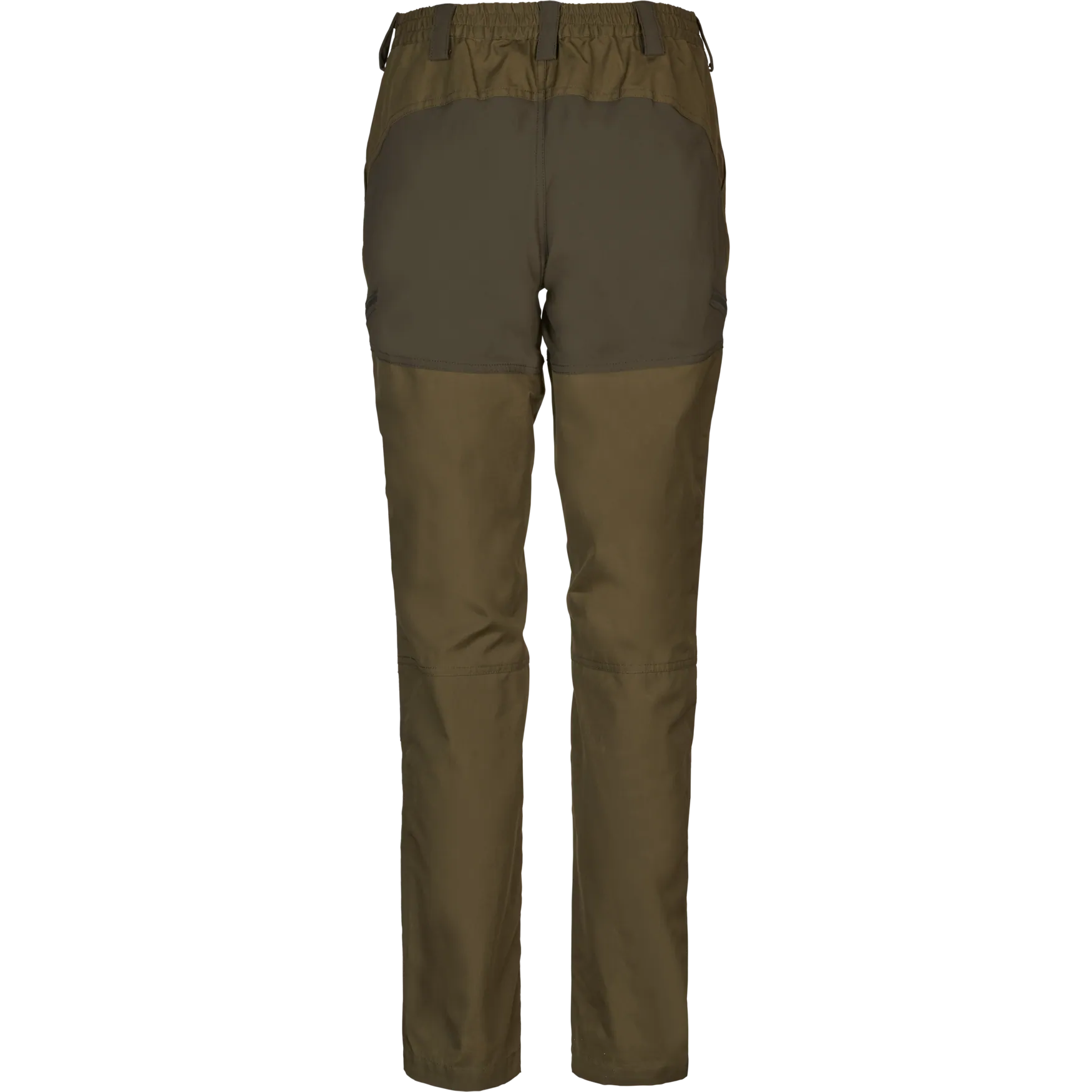 Spodnie Härkila Fjell dla kobiet to doskonałe połączenie trwałości, funkcjonalności i wygody, stworzone z myślą o aktywnych pasjonatkach myślistwa i outdooru. Wykonane z solidnej, woskowanej tkaniny o fakturze płótna (65% poliester, 35% bawełna), zapewniają wysoką odporność na ścieranie i trudne warunki terenowe. Dzięki elastycznym wstawkom w strategicznych miejscach gwarantują wyjątkową swobodę ruchów, dostosowaną do kobiecej sylwetki.