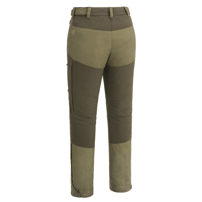Uniwersalne i wytrzymałe spodnie odpowiednie do uprawiania turystyki pieszej, codziennego użytku i polowań. Woskowany materiał i klejone szwy zapewniają dodatkowe właściwości hydrofobowe. Suwaki wentylacyjne po obu stronach. Przestronne kieszenie zapinane na zamek. Regulowany pas z zapięciem na rzep. Regulowany dół nogawki i haczyk na buty.