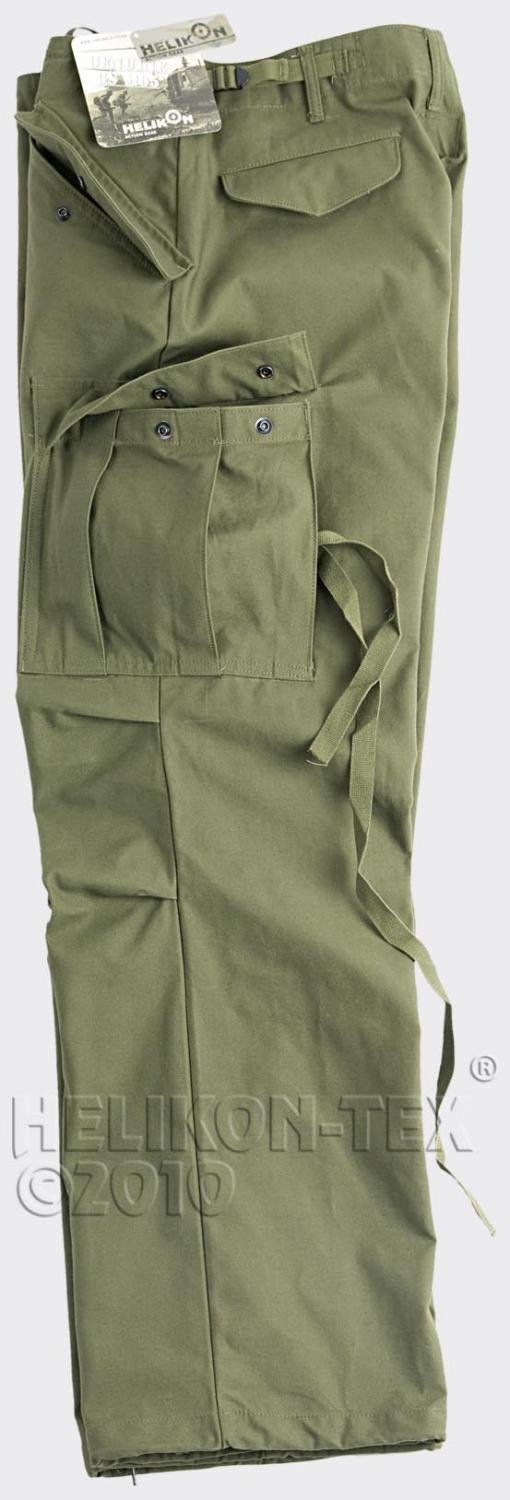 Legendarne spodnie M65 amerykańskiej armii uszyte zgodnie z oryginałem. Wyprodukowane z NyCo Sateen - trwałego, odpornego na ścieranie materiału. Posiadają siedem kieszeni zapinanych na napy, sznurki do obwiązania spodni na nodze lub bucie, oraz troki w kieszeniach cargo, które, obwiązane wokół ud, zapobiegają zsuwaniu się spodni w przypadku dużego obciążenia kieszeni.
