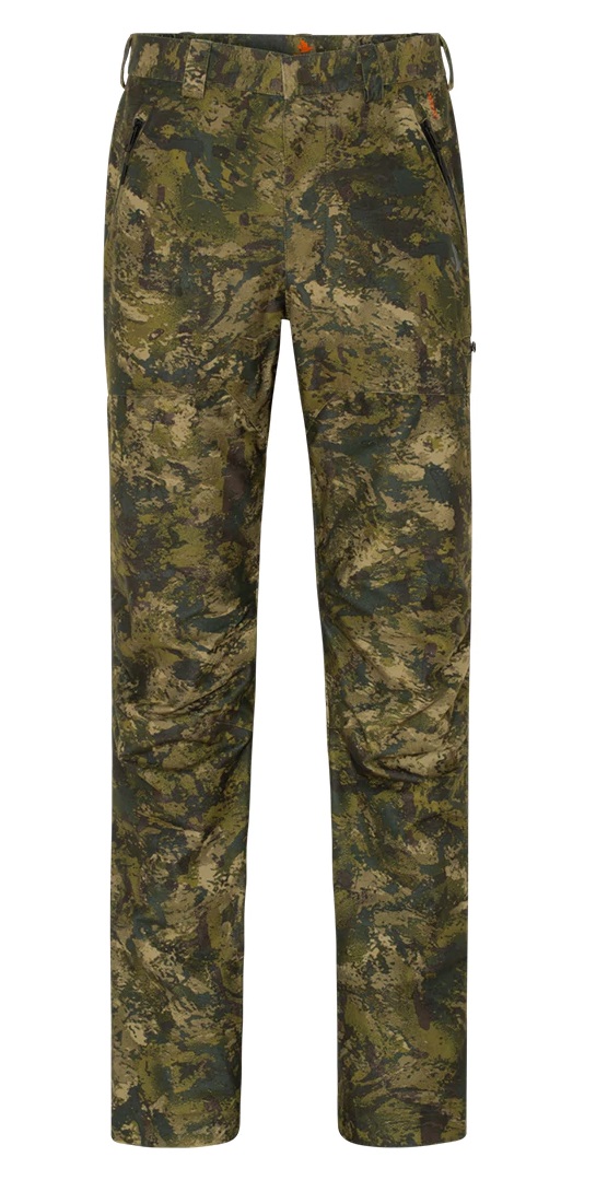 Podobnie jak dopasowana kurtka, spodnie Avail Camo są wykonane ze szczotkowanego, cichego trykotu, który jest zakamuflowany kamuflażem InVis firmy Seeland. Ten kamuflaż jest przeznaczony do pracy przez wszystkie pory roku, co oznacza, że spodnie mogą być używane zarówno w sezonie buck, jak i później. Spodnie są również wyposażone w naszą wiatroszczelną i wodoodporną membranę SEETEX® z wodoodpornością 10 000/10 000 mm, która zapewnia suchość podczas polowania, nawet jeśli złapie Cię przechodząca ulewa. Mają dwie skośne kieszenie przednie i dużą kieszeń na lewym udzie, wszystkie z wodoodpornymi zamkami błyskawicznymi, które ułatwiają otwieranie, nawet w rękawiczkach lub z zamarzniętymi palcami. Spodnie mają paski na rzepy przy kostkach, dzięki czemu można je ciasno zapiąć wokół butów, aby zapobiec przedostawaniu się brudu.