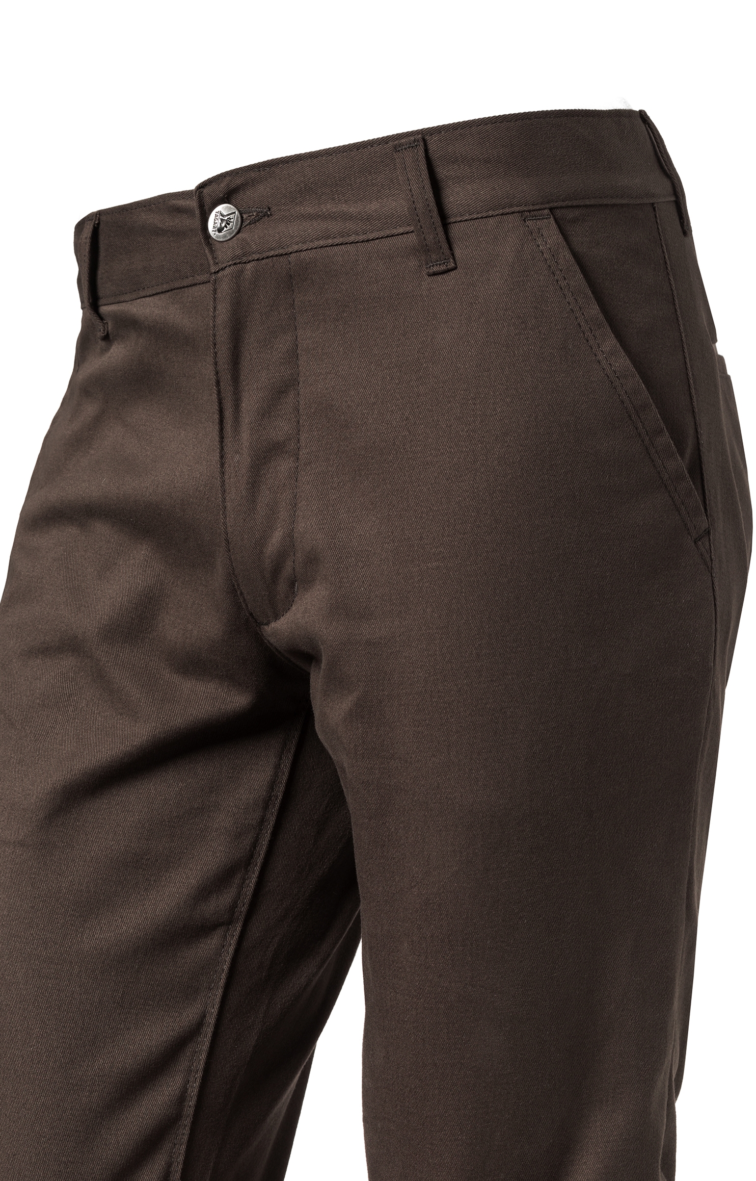 Spodnie o kroju tradycyjnych spodni jeansowych. Bawełna o wysokiej jakości, trwała i przyjemna w dotyku. Dzięki dodatkowi elastanu spodnie lepiej dopasowują się do sylwetki, mniej się wypychają i zwiększają swobodę ruchów. Dwie kieszenie boczne oraz dwie z tyłu.