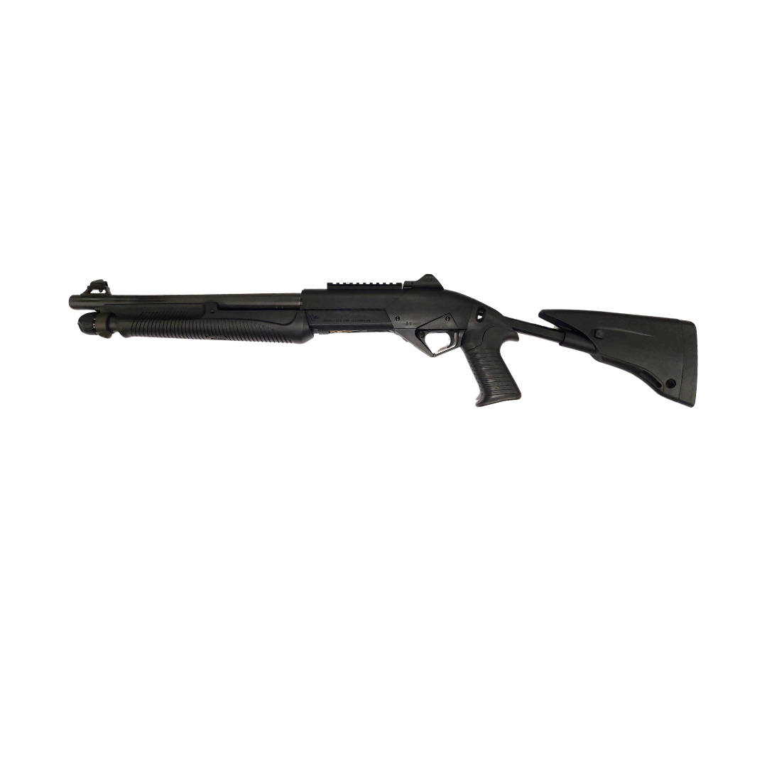 W tej wersji strzelba wyposażona jest w 14-calową lufę, która zapewnia doskonałą manewrowość, szczególnie w ciasnych przestrzeniach. Teleskopowa kolba umożliwia szybkie dostosowanie długości do indywidualnych preferencji strzelca, co znacząco poprawia komfort i stabilność podczas użytkowania.