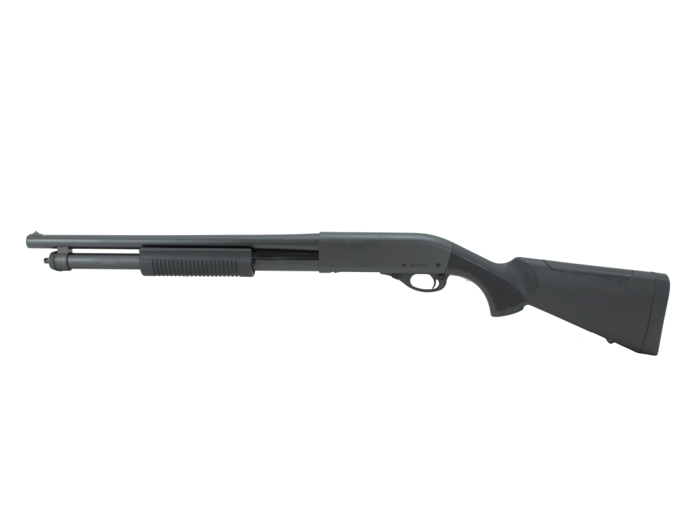 Legendarna strzelba Remington 870, ze stalową komorą zamkową. Uważana jest za najbardziej wytrzymałą strzelbę systemu “pump action”. Została opracowana w latach pięćdziesiątych XX wieku i wciąż znajduje się na wyposażeniu wielu służb ochrony prawa. Używa jej także policja i siły zbrojne USA.