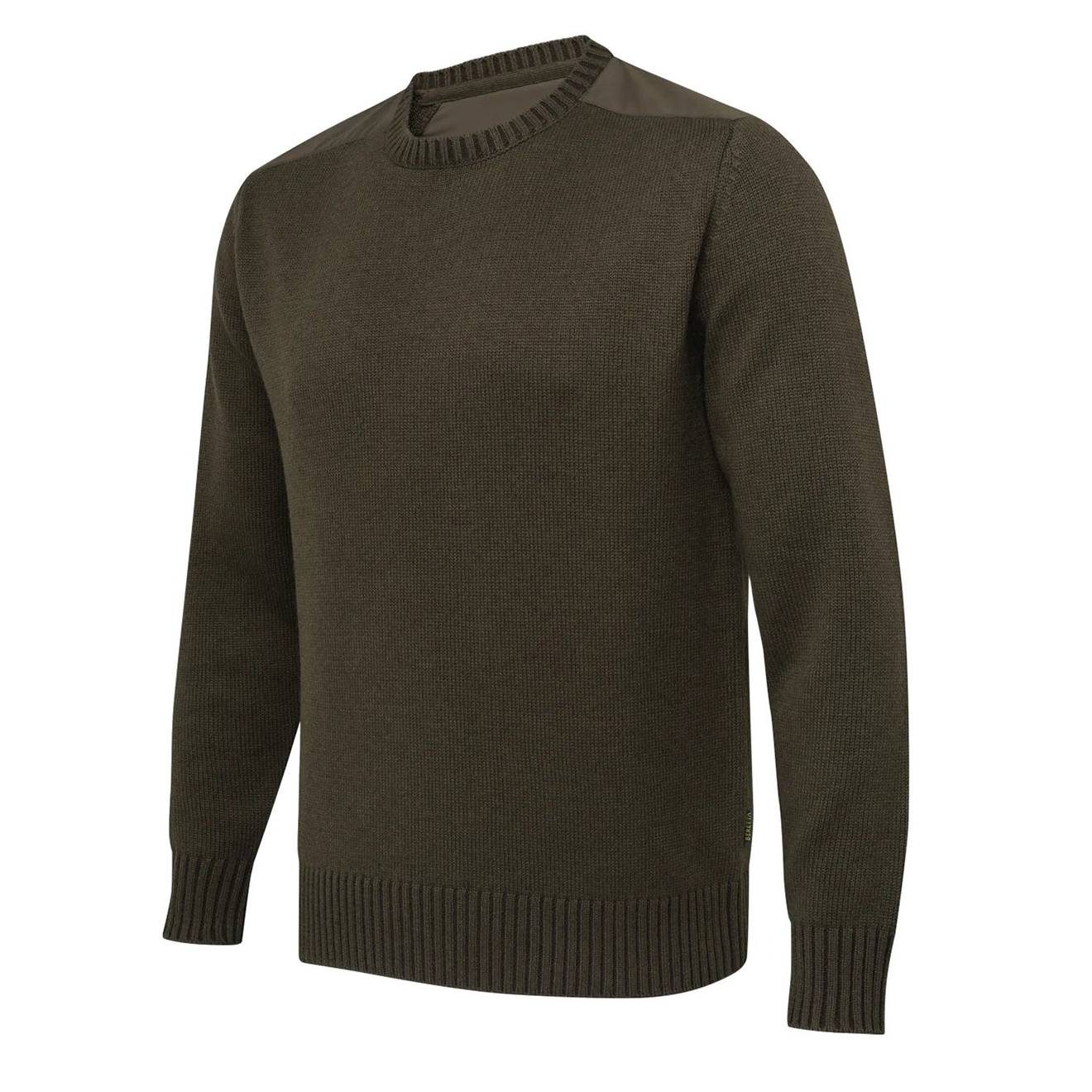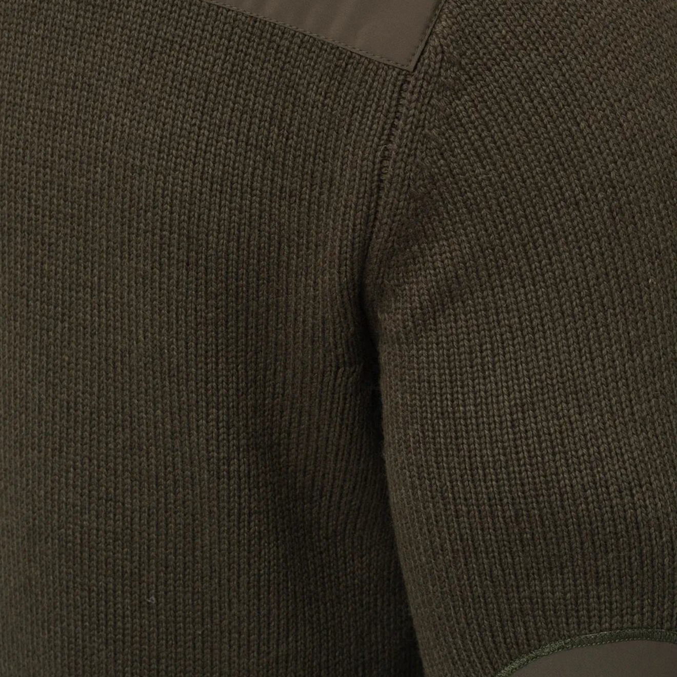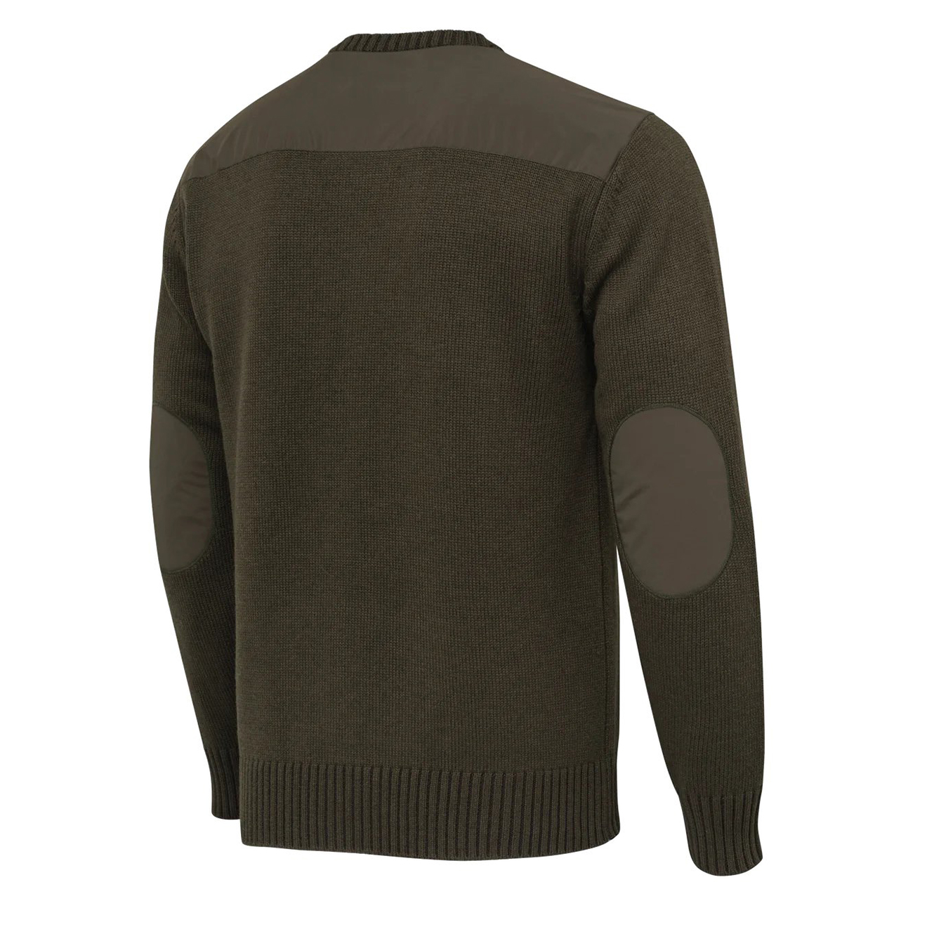 Ciepła mieszanka wełny z nylonowymi wstawkami na ramionach i łokciach dla zwiększenia trwałości.